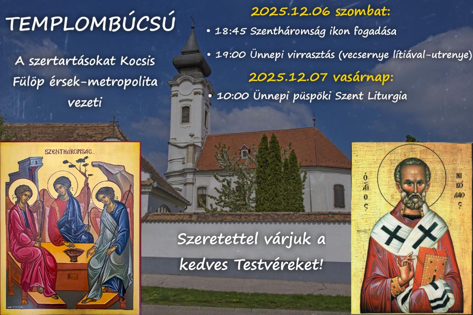 Tartalmas hétvége elé néznek a győriek: most szombaton érkezik hozzájuk a Szentháromság ikon, emellett Szent Miklós püspök ünnepe alkalmából templombúcsúra is készülnek a helyiek. December 6-án 19.00 órától virrasztás, másnap, december 7-én vasárnap 10.00 órától püspöki Szent Liturgia szerepel a programban.