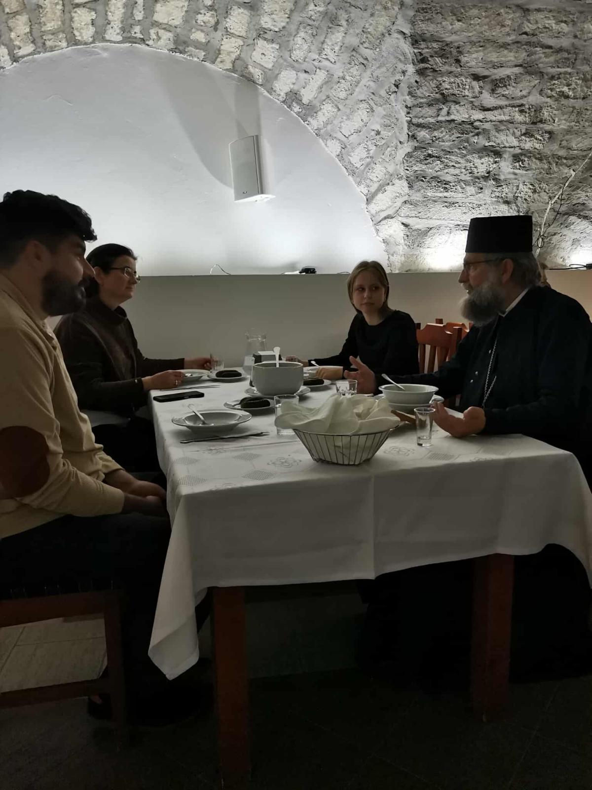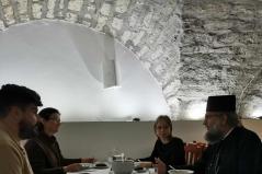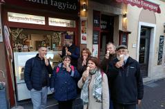 Vecsernye után idegenvezető mutatta be Sopron szakrális emlékeit, a belvárosi templomok gazdag történetét, a Kecske templom különleges építészeti értékeit, a Széchenyi család egykori temetkezési helyét, a nevezetes Kapisztrán-szószéket és az európai hírű Káptalantermet. A sok látnivaló közepette, jó idő lévén, metropolita atya még fagylaltra is meghívta a bátrabbakat...