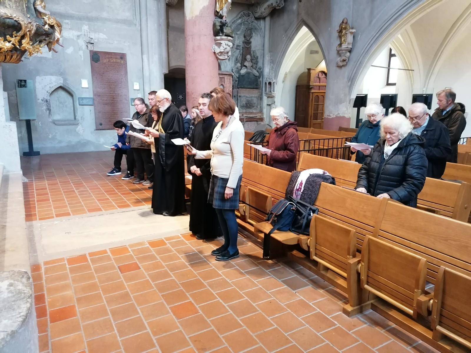 A lelkes és jókedvű résztvevők az ország több pontjáról érkeztek, hozzájuk csatlakoztak a helyi közösség tagjai és a görögkatolikus egyházzene iránt érdeklődők is. Helyszínül a Fő téren álló Nagyboldogasszony bencés templom és kolostor étterme szolgált, ahol a tanítás és gyakorlás mellé finom falatokat készítettek számunkra frissítőként. A belváros első, 1260-as évekbeli misézőhelyeként jegyzett templom falai is csodálkozhattak, amikor péntek este vecsernye, másnap reggel utrenye hangzott fel tereiben az alkalmi kórussal.