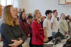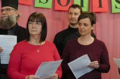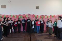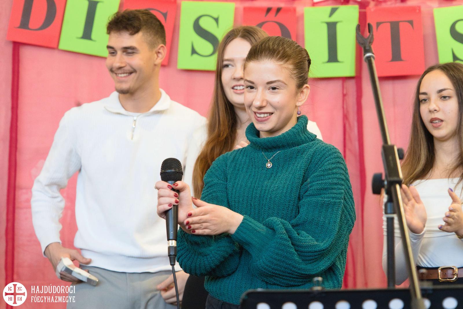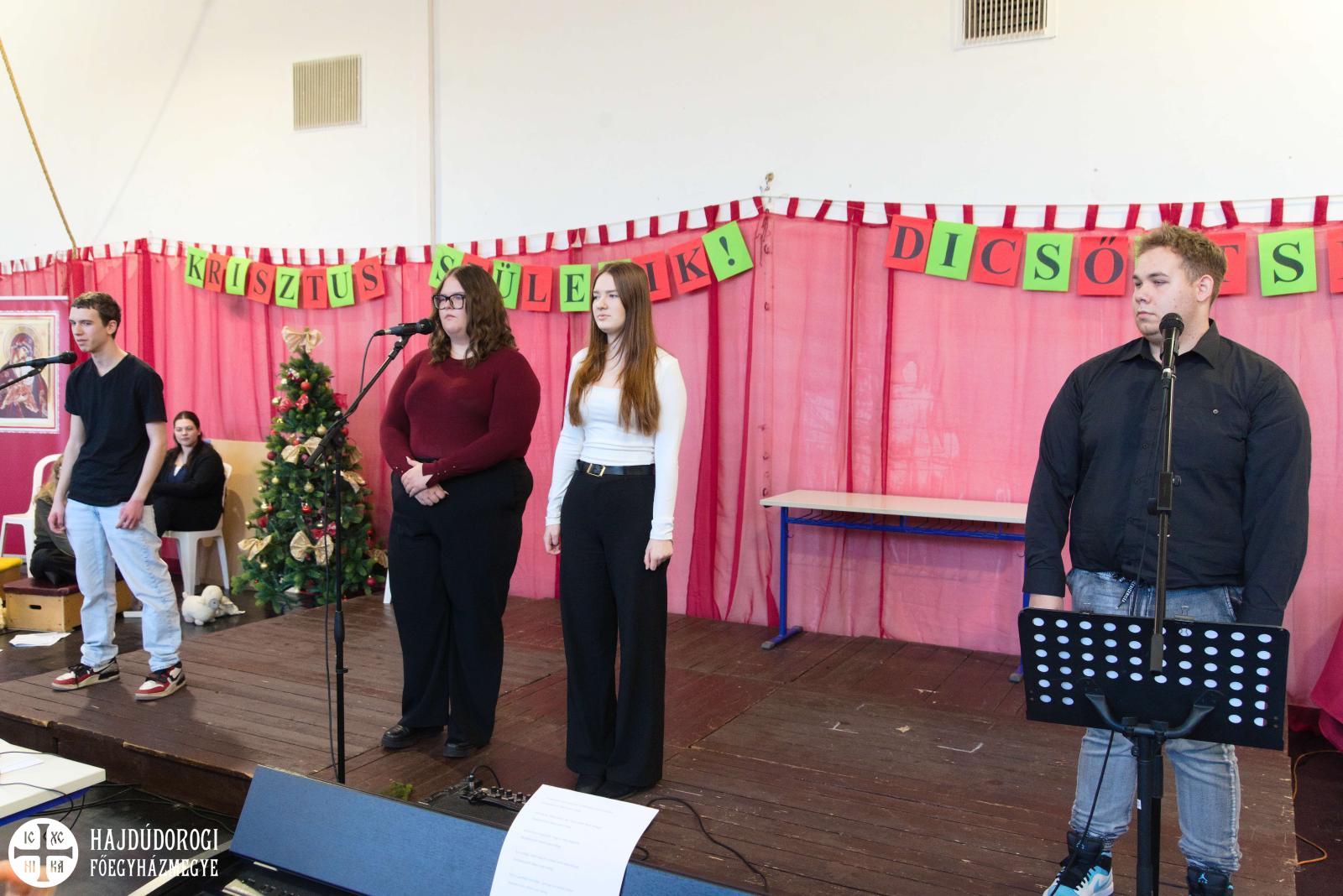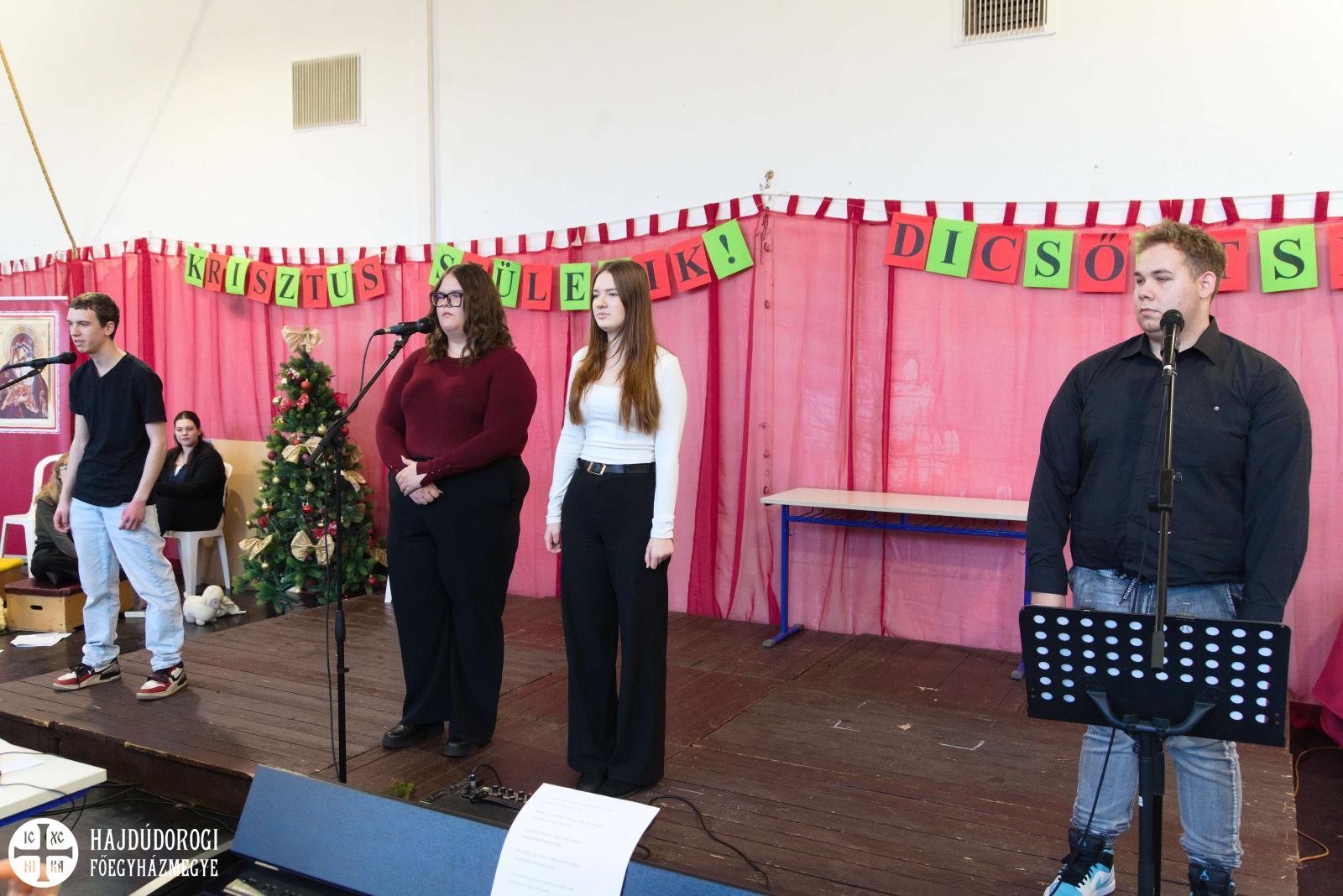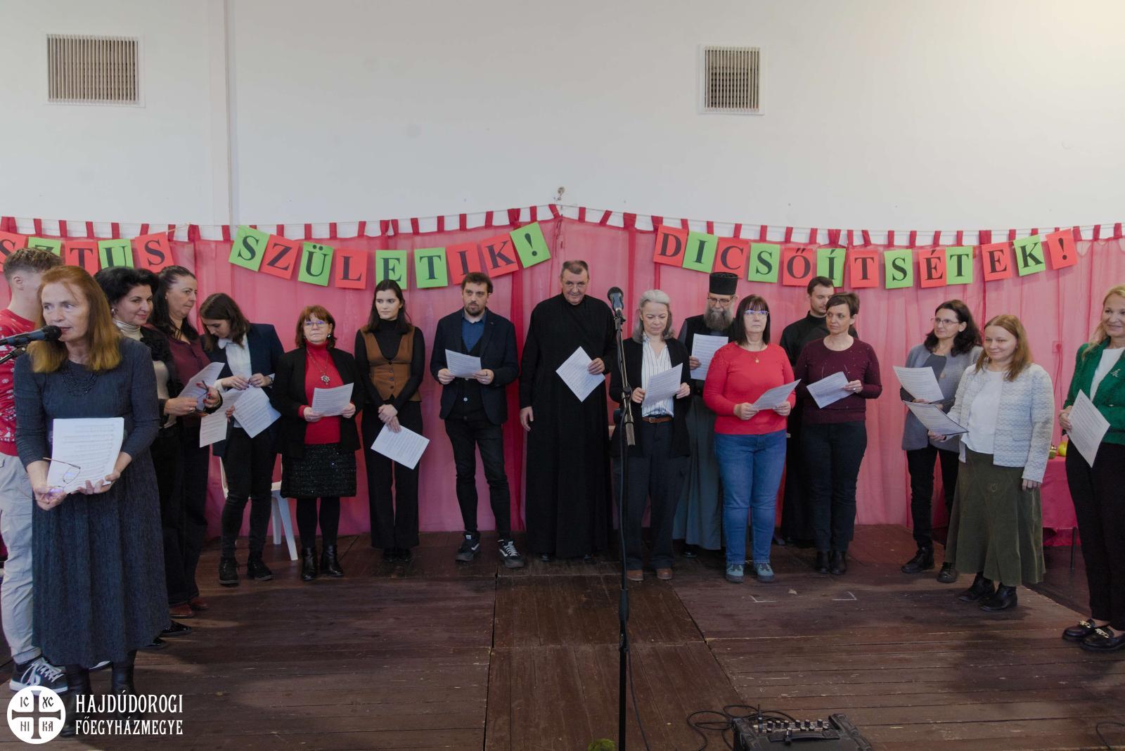 Az ünnepség kezdetén karácsonyi katavásziákat énekeltek a jelenlévő pedagógusok, tanulók Kocsis Fülöp metropolitával és az intézmény két egyházi szolgálattevőjével, Szilágyi Gábor és Papp András atyával közösen. Ezután Fülöp atya gyújtotta meg az utolsó gyertyát is az adventi koszorún.