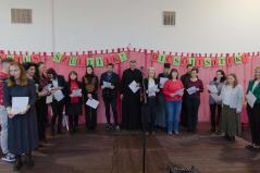 Ezután az intézmény tanárai léptek színpadra, akik az Aghni Parthene című bizánci ortodox himnuszt énekelték el.