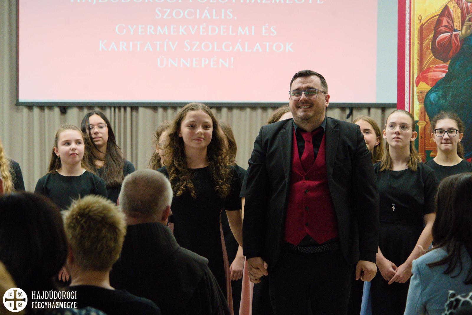Ugyanis a gyermekvédelmi hálózatunk és a Főegyházmegyei Karitász a 15 éves jubileumát ünneplő Szent Lukács Görögkatolikus Szeretetszolgálattal karöltve köszöntötte azokat, akik nap mint nap a szociális és egészségügyi ellátásban dolgoznak – hivatásként, odaadással, szeretettel. A közös együttlétet a Lautitia Gyermekkar varázslatos éneke nyitotta, Nemes József karnagy vezényelt a fiataloknak.