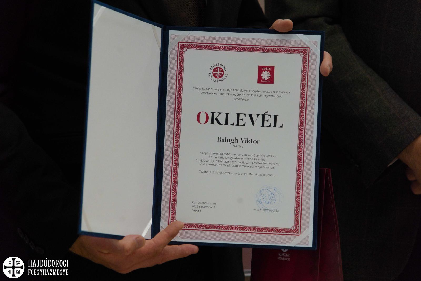 Hajdúdorogi Főegyházmegyei Karitász díjazottja: