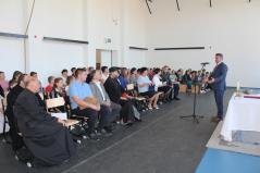 Igazgatónő köszöntője után Tasó László országgyűlési képviselő osztotta meg gondolatatit, emlékeit a régi tornateremhez kapcsolódva. Örömmel fogadta, hogy gyermekeink egy megújult létesítményben sportolhatnak, ahol a lelki feltöltődés mellett testben is erősödhetnek. Sikereket, eredményes munkát kívánt a pedagógusoknak, élményeket, küzdeni akarást, összetartást a diákoknak, akik boldogan vették birtokukba ezt a megszentelt helyet.