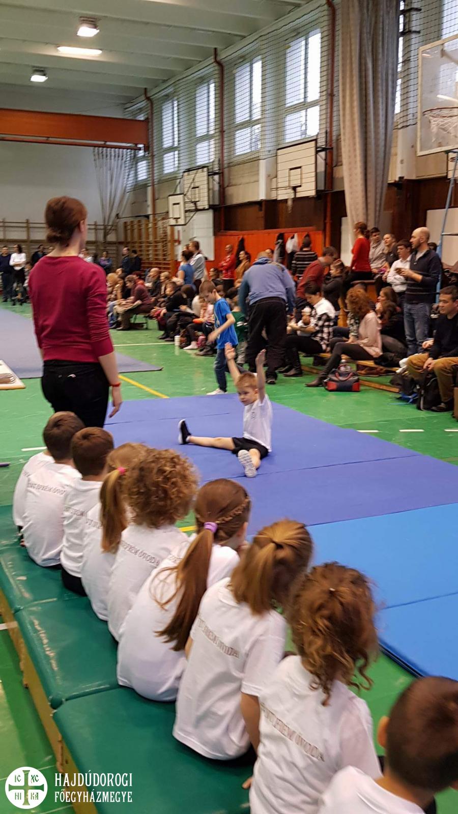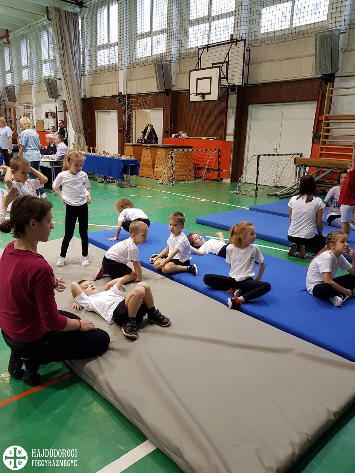 A verseny napján mindenki izgatottan érkezett az iskolába. A gyermekek az egységes tornaruhájukba átöltöztek és a tornaterembe kicsit bemelegítettünk. A versenyszámokat külön értékelték, forgószínpad szerűen. A gyakorlatok előtt volt 3 percük szintén bemelegítésre. Fokozott önuralommal, koncentrációval és figyelemmel végezték a feladatokat. Minden helyszínen nagyon jól teljesítettek.