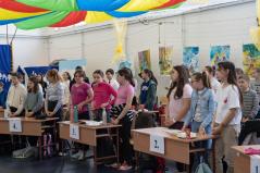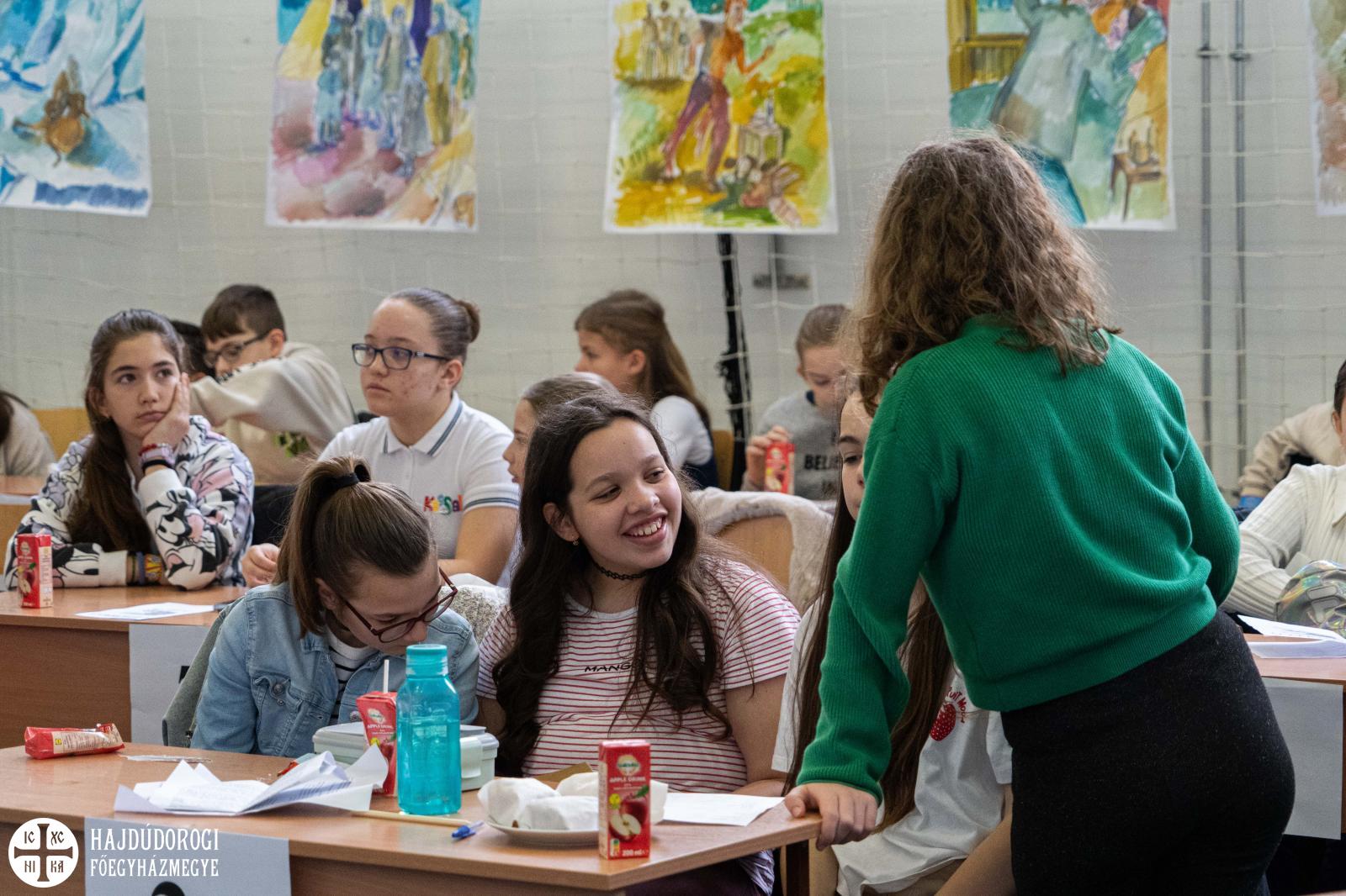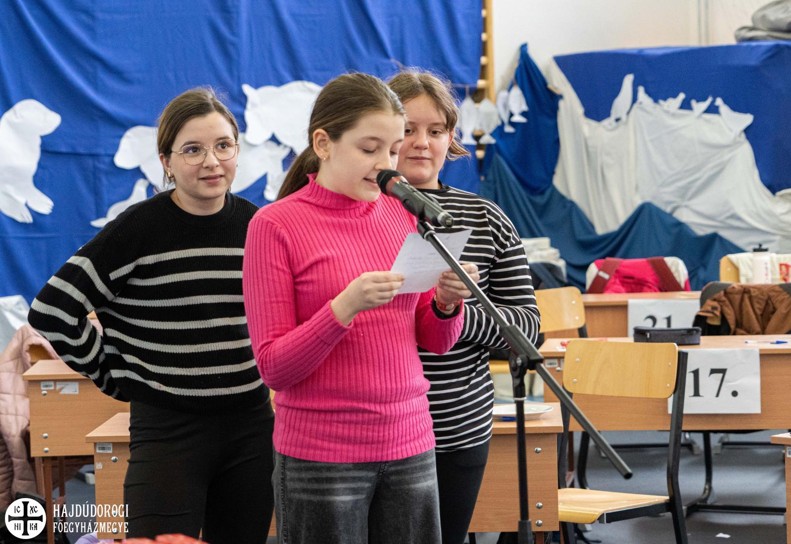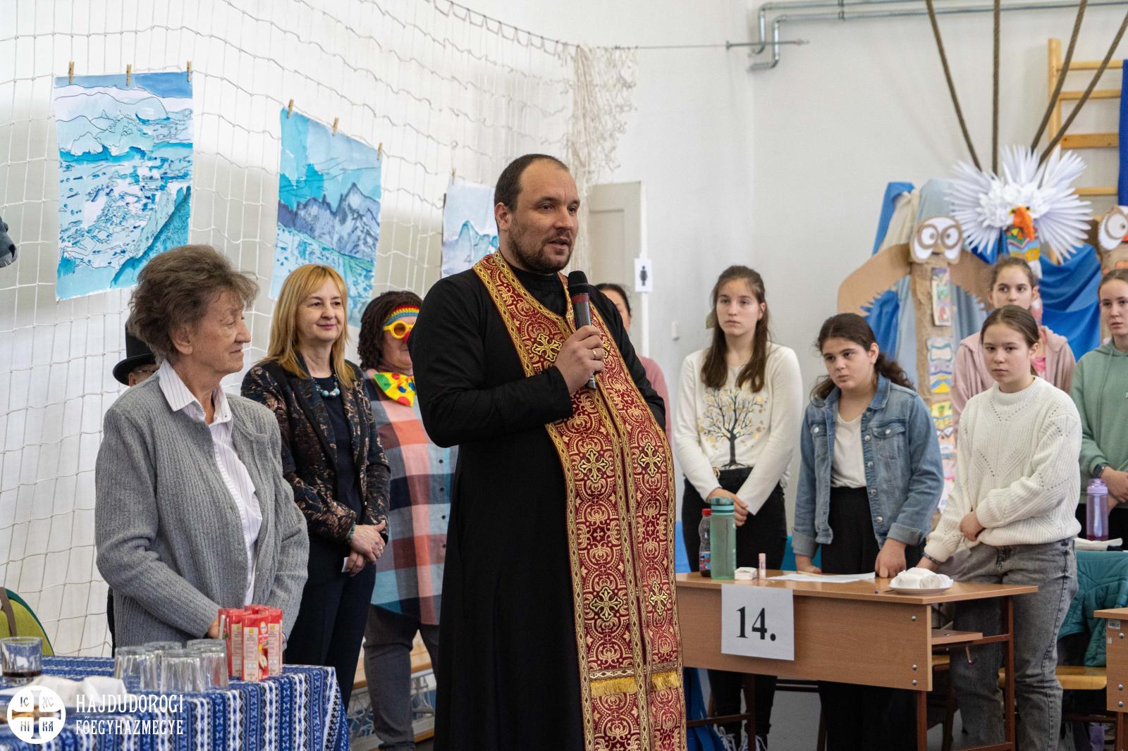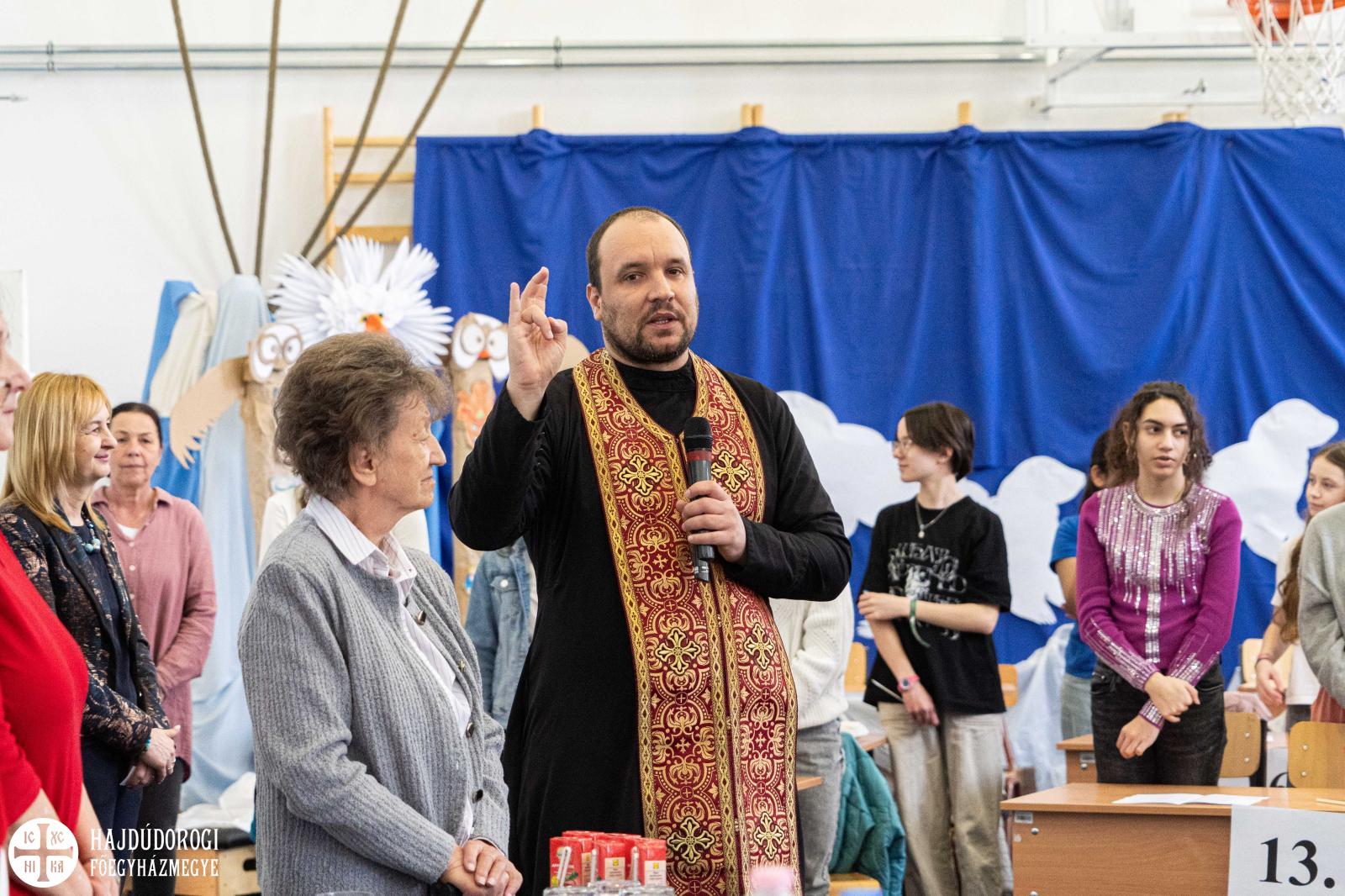 A verseny kezdetén közösen imádkoztuk el a Miatyánkot, Boros András görögkatolikus parókus, iskolalelkész pedig áldást adott a versenyre érkezőkre.