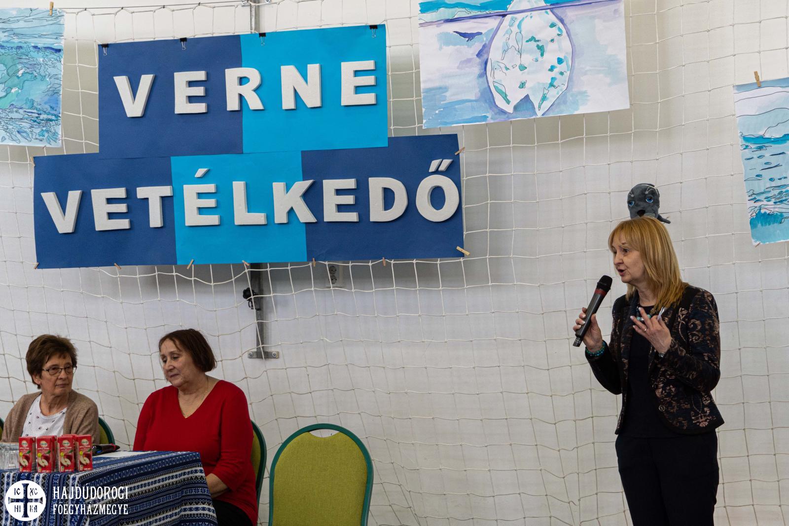 „Ti vagytok a mai nap főszereplői” – szólt a versenyzőkhöz Oláhné Kanyó Andrea intézményvezető. Hangsúlyozta: Verne regényei által nemcsak kalandokban van része az olvasónak, de nagyon sok hasznos ismerettel is gyarapszik.