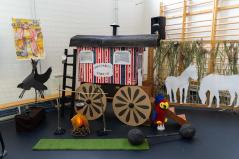 Turkevet és a jakutok földjét boltos és tárgyas játékkal jelenítették meg az iskola folyosóján.