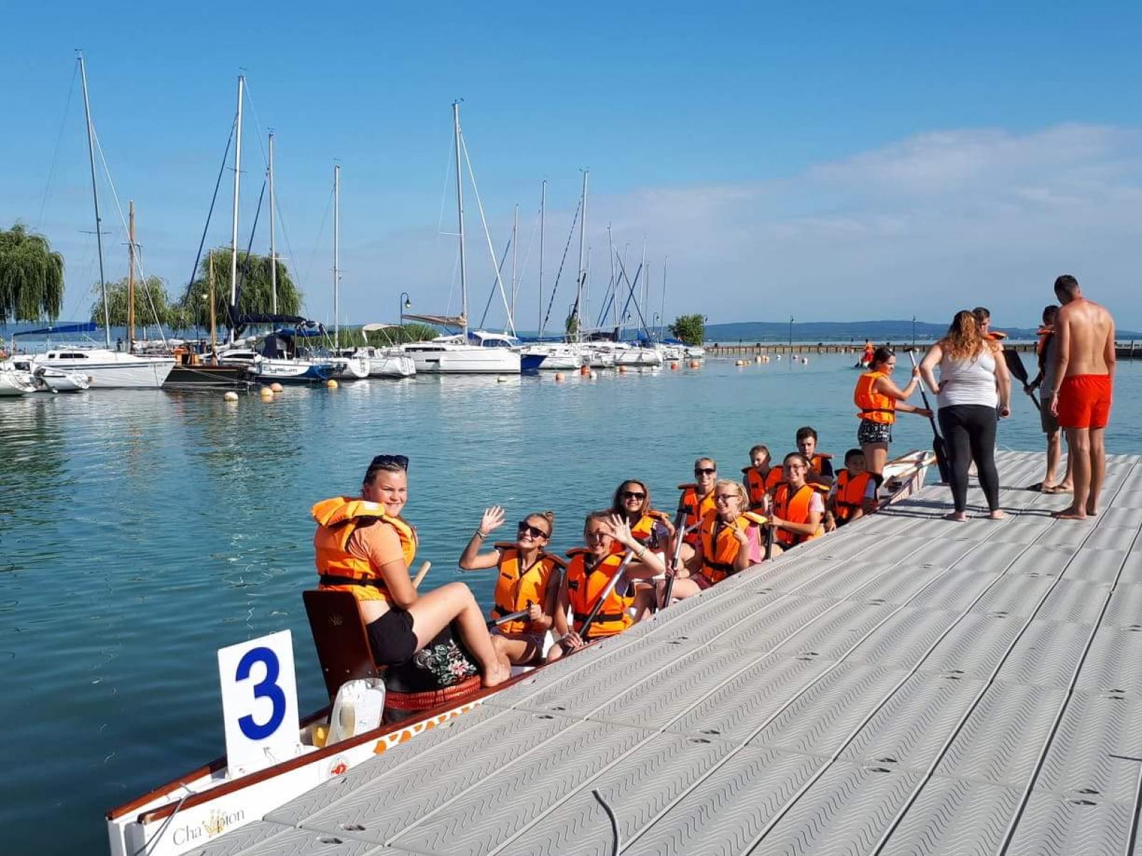 A csatakiáltásunk, ami a hét folyamán nagyon sokszor elhangzott, így szólt: ” Mától nincsen frász, mert a világoszöld az ász! Világos -, világos – világos – zöld! ” A gyerekek törekedtek barátságokat kötni, mely a hét folyamán egyre erősebb lett. A zöld tábor gyermekei, kicsik és nagyok egyaránt, minden este boldogan fociztak, kiütőztek és játszottak együtt. A táborban színesebbnél - színesebb programok közül választhattunk. Sétahajóztunk, sárkányhajóztunk, valamint beneveztünk tollaslabda és kosárlabda versenyre.