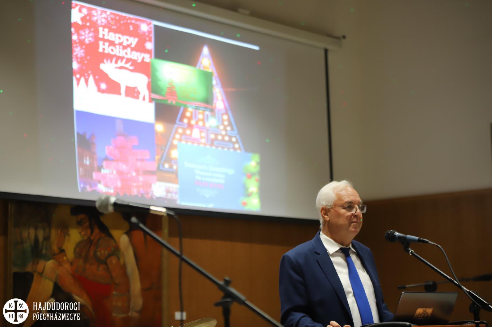 A hasznos gondolatok után egy kis szórakozással folytatódott a karácsonyváró nap: a Szent László Gimnázium tanáraiból álló zenekar, a Dienes Band fokozta a jó hangulatot, majd egy újabb érdekes előadás következett. A Debreceni Egyetem oktatási rektorhelyettese, néprajzkutatója Bartha Elek mesélt a karácsony eredetéről, az ünnephez kapcsolódó népszokásokról.