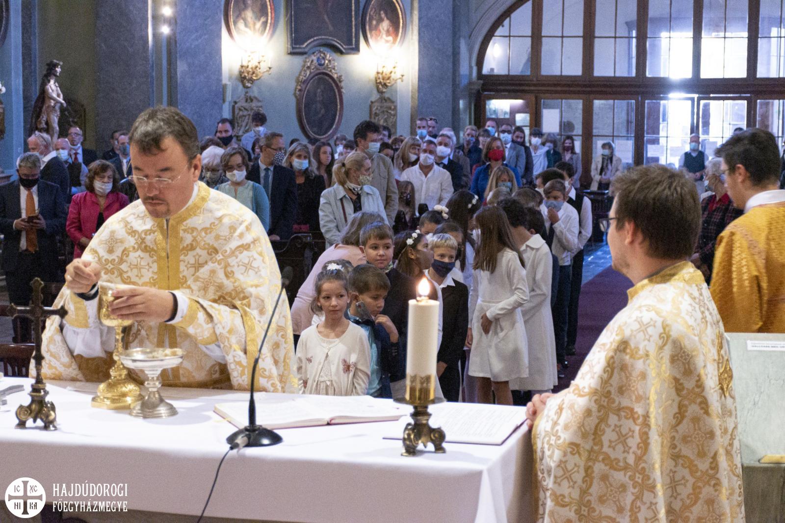 Az elsőáldozást megelőző hittanvizsga Czirják János és Lakatos Péter atyák jelenlétében és felügyelete mellett sikeresen lezajlott szombat délelőtt, amit nagy izgalmak közepette az első szentgyónás elvégzése követett.