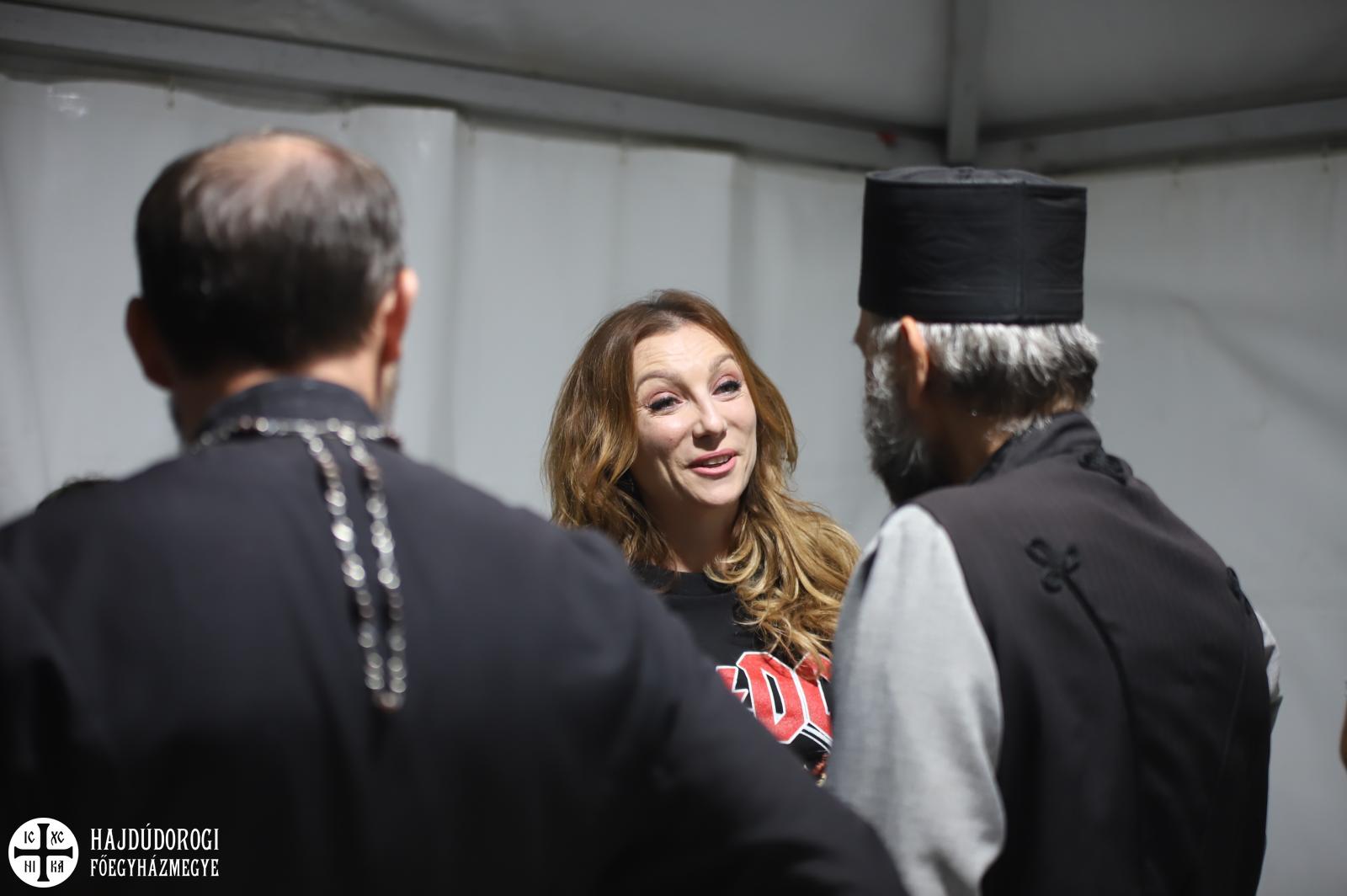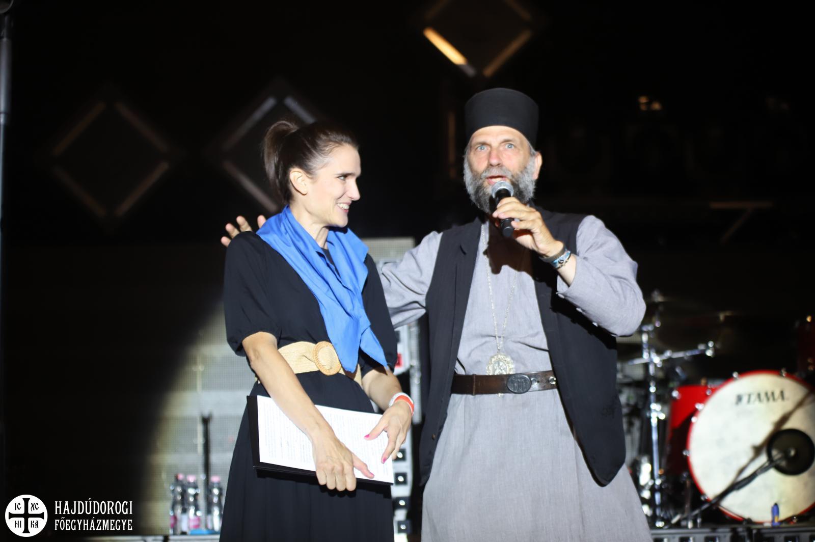 Fülöp metropolita után Nagy-Vargha Zsófia, a Kulturális és innovációs Minisztérium fiatalokért felelős helyettes államtitkára köszöntötte a koncertre várókat, akinek a zarándoklat hagyományaihoz híven Fülöp atya zarándoksálat ajándékozott.