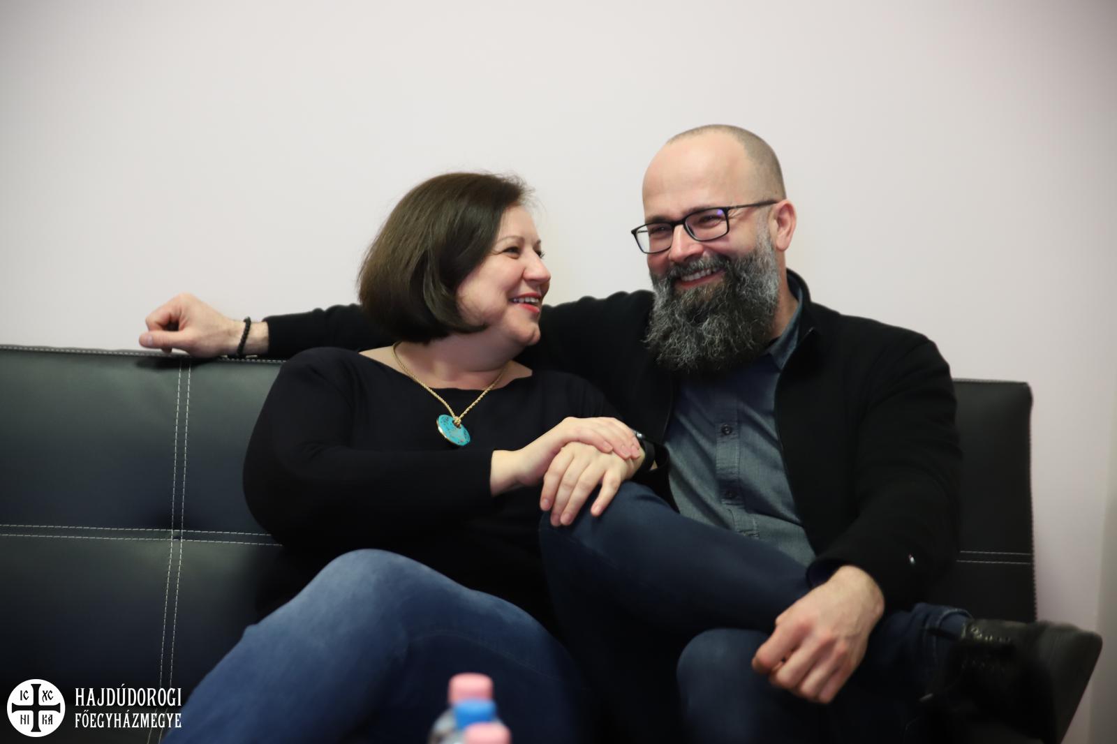 Kriszta: Egyébként ilyen értelemben itt tényleg nagyon meg tudom élni az anyai ösztöneimet. Ebben most nagyon megtalálom magam, ez is segít az elfogadásban amellett, hogy én tényleg nagyon jól érzem magam ebben a házasságban. Egy jól működő házasság ugyanolyan érték, ugyanolyan becses és ugyanúgy érdemes érte dolgozni, mint egy gyerek felneveléséért. Nem kapjuk a tudást meg a működésképességet csak úgy magától. Sokan itt szúrják el, hogy azt hiszik, hogy pusztán a hit működteti a házasságot, de a hit mellé kell a belefektetett energia, az a cselekvő elhatározás, hogy a jó házasság nem magától van a keresztény pároknál sem, hanem azért és azzal nekünk is dolgoznunk kell.