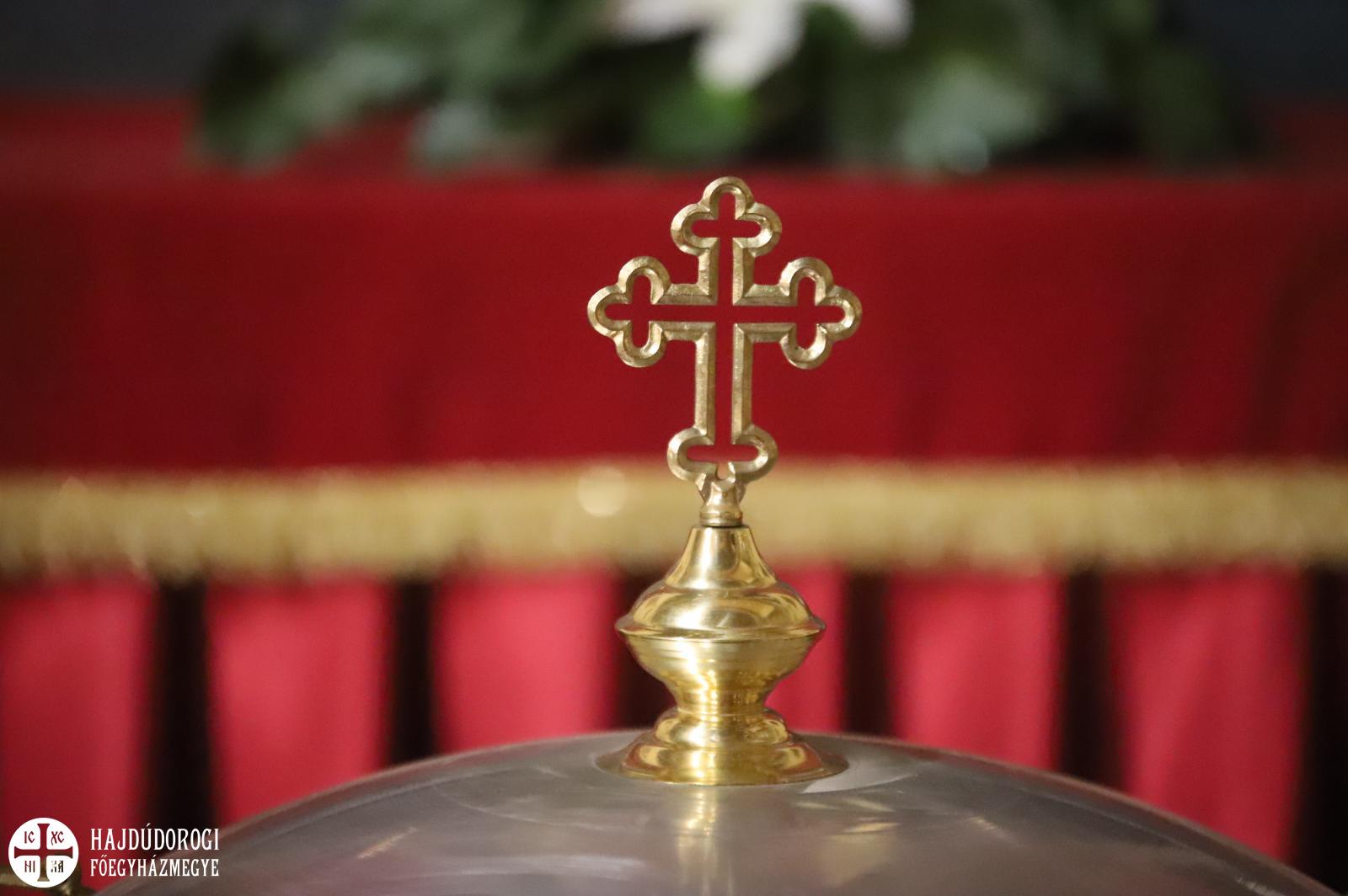 Fedezzük föl, örvendező szívvel adjunk hálát az Úr Istennek ezért a legyőzhetetlen erőért. És adjunk hálát azért is, hogy sok ikonunk van, amelyeket szemlélhetünk, amelyek mindegyike ezt erősíti bennünk. Krisztus leszállt a Földre, egyesült velünk, itt van velünk végérvényesen. Imádkozzunk azokért, akik ezt nem értik! S azokért is, akiket felbőszít a legyőzhetetlen erőnk, akik támadást, támadásokat intéznek a keresztények ellen, dühösek ránk, mert mi Krisztushoz tartozunk. Hiszen éppen ő bátorított minket előre: „Boldogok vagytok, ha miattam gyaláznak és üldöznek titeket, és mindenféle rosszat hazudnak rólatok. Örüljetek és ujjongjatok, mert jutalmatok bőséges a mennyekben. Mi a templomainkban már a mennyben érezzük magunkat. Különösen ebben a szép gödöllői templomban. Talán éppen ezért akarták elvenni tőlünk. Hála Istennek, még ha teljesen elpusztították volna is a templomunkat, a Krisztustól kapott boldogságot elvenni tőlünk lehetetlen.