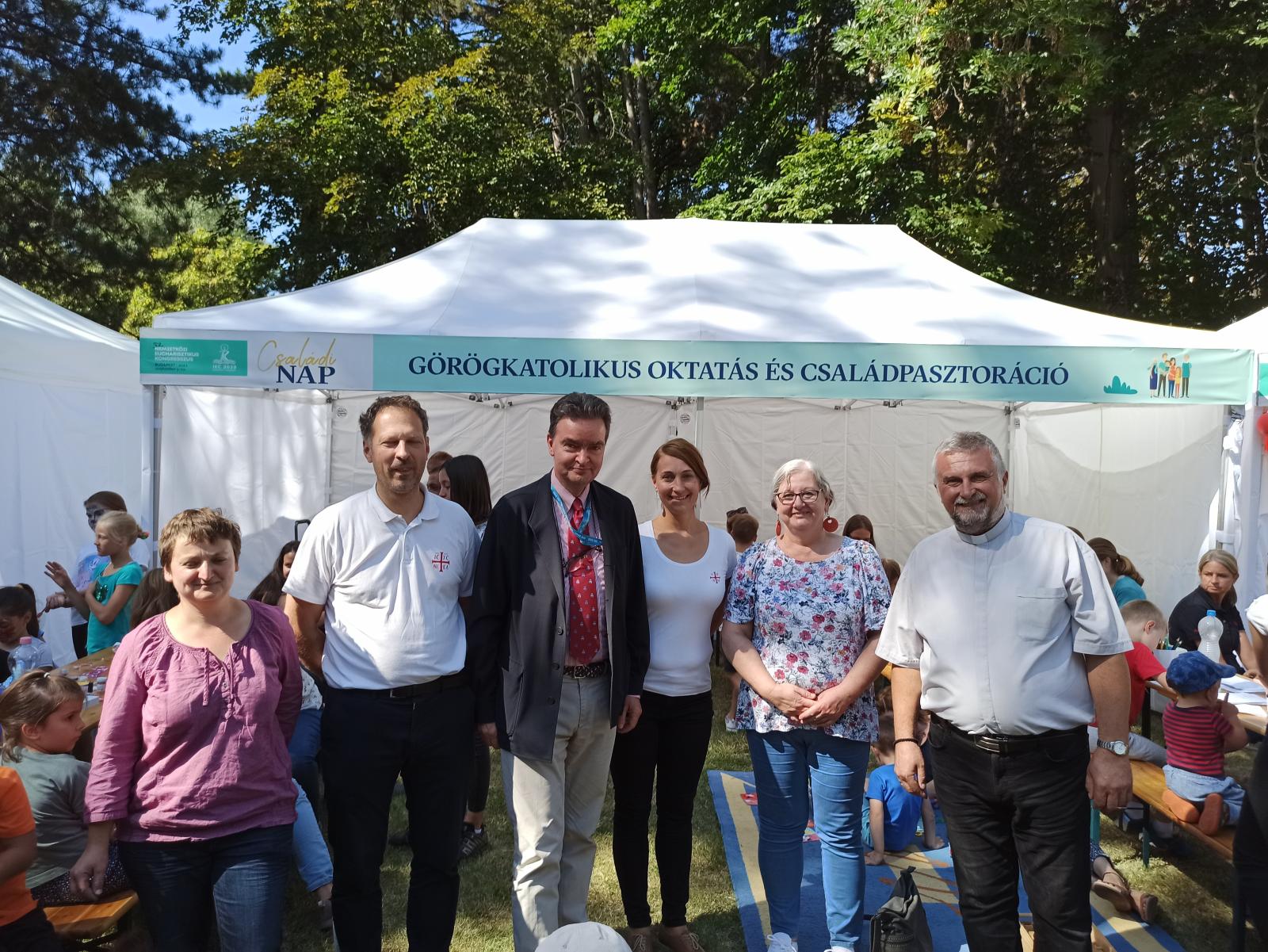 Megtisztelt látogatásával bennünket dr. Orosz Atanáz megyés püspök atya. Különleges megtiszteltetésként közös fényképet készíthettünk Habsburg György nagykövet úrral a sátrunk előtt. A nap nagy részét velünk töltötte Juhász Géza atya, a Miskolci Egyházmegye helynöke és dr. Jaczkó Sándor atya, a Hajdúdorogi Főegyházmegye budapesti helynöke, meglátogatta sátrunkat Szabó Tamás a Nyíregyházi Egyházmegye pasztorális helynöke és számos görögkatolikus atya a családjával.