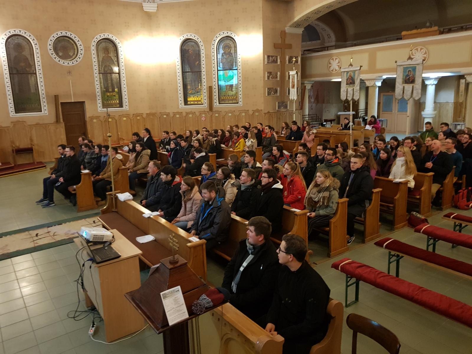 A találkozó péntek este kezdődött a szatmárnémeti Szent Miklós görögkatolikus templomban. Kiosztották az erre az alkalomra készült programfüzetet. A 12 különféle egyetemi lelkészségről érkezetteket id. Pallai Béla címzetes esperes-parókus köszöntötte. Összesen nyolc pap, két diakónus és két szerzetesnővér kísérte el a fiatalokat. A helybeli Árpád-házi Szent Piroska Nőszövetség készítette a vacsorát.