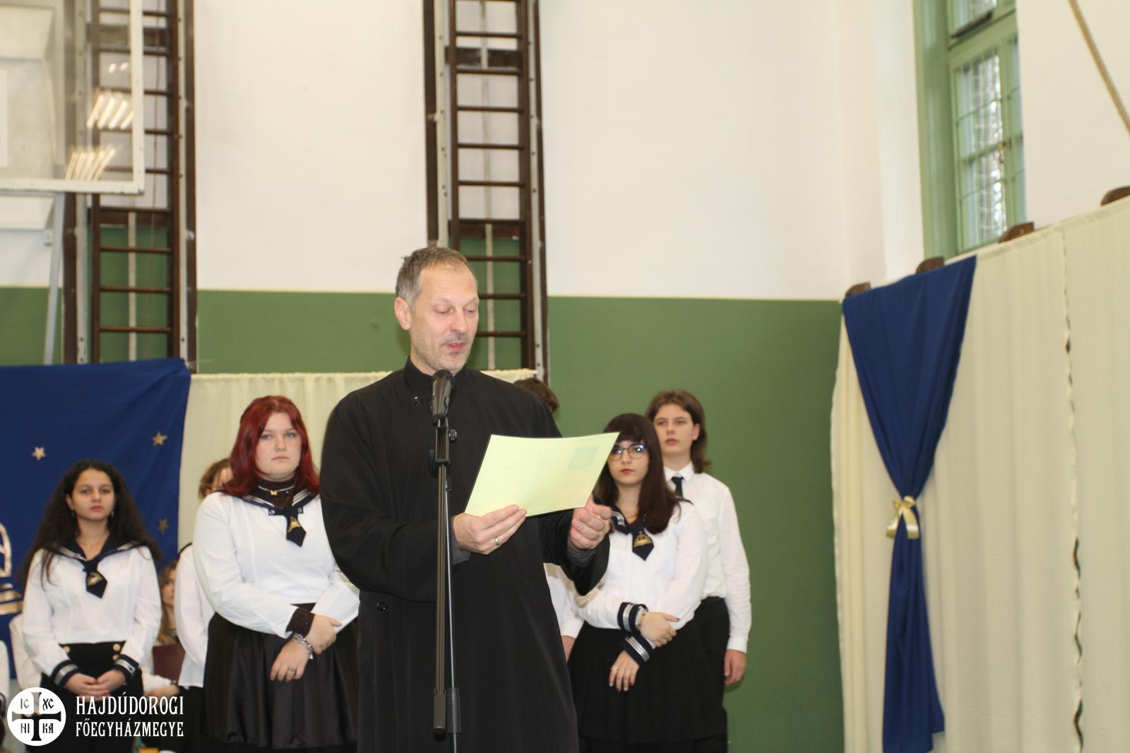 Idén az iskola tanulói színvonalas műsort adtak elő, és most hirdették ki a meseíró pályázat eredményeit is. Vénusz Edina, az intézmény igazgatója Szent Pál apostol aznapi Liturgiában szereplő gondalatival nyitotta meg az ünneplést: “Hasonlóképpen buzdítsd az ifjakat, hogy mindenben legyenek józanok! A jótettekbe te magad mutass példát, a tanításban romlatlanságot, a magatartásban méltóságot, beszéded legyen kifogástalan és megbízható, hogy megszégyenüljön az ellenfél mivel semmi rosszat sem tud mondani rólunk.”