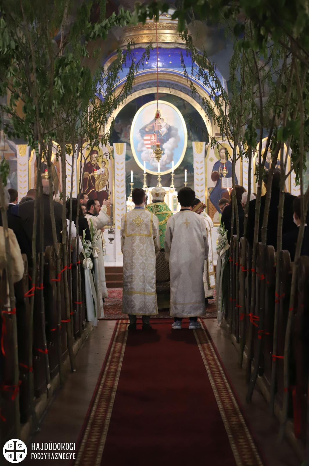 A mi Urunk Jézus Krisztus malasztja, az Atyaisten szeretete és a Szentlélek közöltetése legyen mindnyájatokkal! – ez minden Szent Liturgiában elhangzik. Minden egyes Liturgiában, amikor halljuk ezt a szót, jusson eszünkbe Pünkösd ünnepe, hiszen ilyenkor a lelket fogadjuk, s rajta keresztül a Szentháromságot. Ez a szó köti össze a földi életünket a mennyei élettel. Elhangzik az igei tanítás, az igei liturgia és most válunk képessé arra, hogy közeledjünk a szentélyhez, hogy fölmenjünk a mennyországba, hogy részesüljünk az isteni önközlésben. A Szentlélek tesz képessé bennünket arra, hogy be tudjuk fogadni Istent.