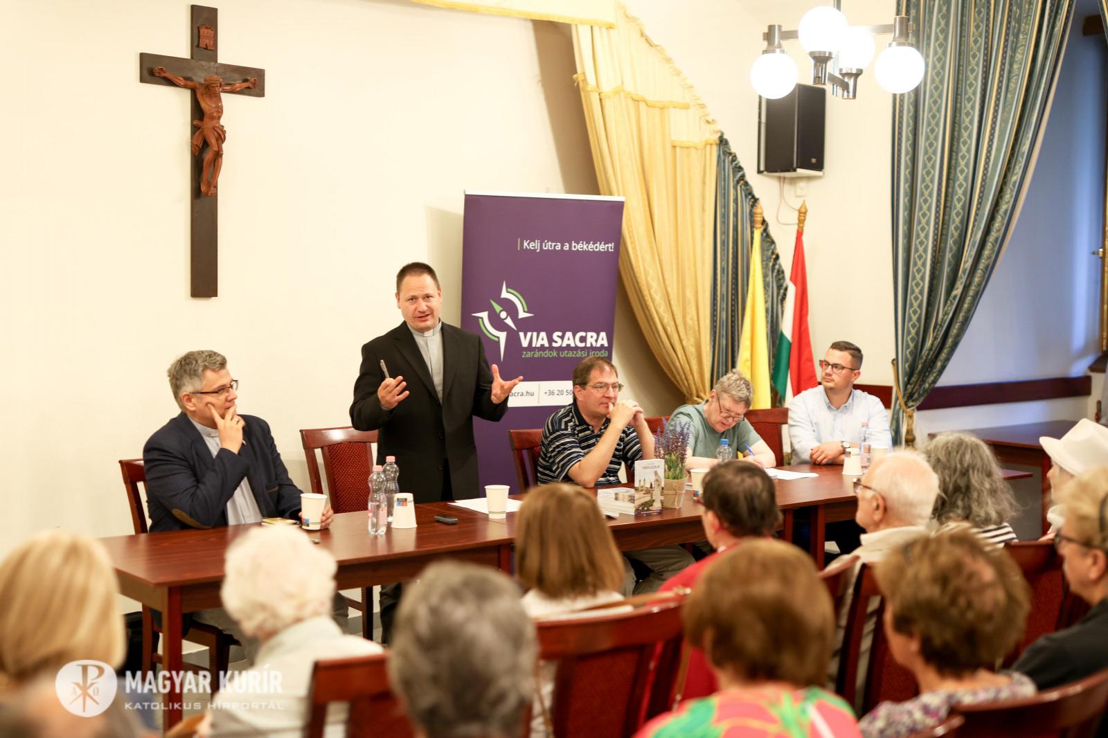 A szentmisét követően hatalmas érdeklődés mellett került sor Koncz Attila Međugorjéról szóló könyvének bemutatására a Szent István-bazilika Mária termében. A rendezvény moderátora Kuzmányi István, hírportálunk és az Új Ember igazgató-főszerkesztője volt, egyúttal a kötet felelős kiadója. Kérdésére Budai András, a Via Sacra zarándok utazási iroda vezetője, a Zarándokútikönyvek sorozat ötletgazdája elmondta: az elgondolás Török Csaba teológussal, az Esztergom-Vári Nagyboldogasszony és Szent Adalbert Főszékesegyház plébániai kormányzójával, az MKPK televíziós referensével közösen született meg, a megvalósításban pedig a Magyar Kurír segédkezett. A Međugorje a sorozat harmadik kötete. Az első a Lourdes című kiadvány volt, amelyet ugyancsak Koncz Attila írt; a második, a Fatima című könyv pedig Kuzmányi István munkája. A már készülő negyedik kötet szerzője Török Csaba, a a Róma című kiadvány várhatóan a 2025-ös szentévre jelenik meg.