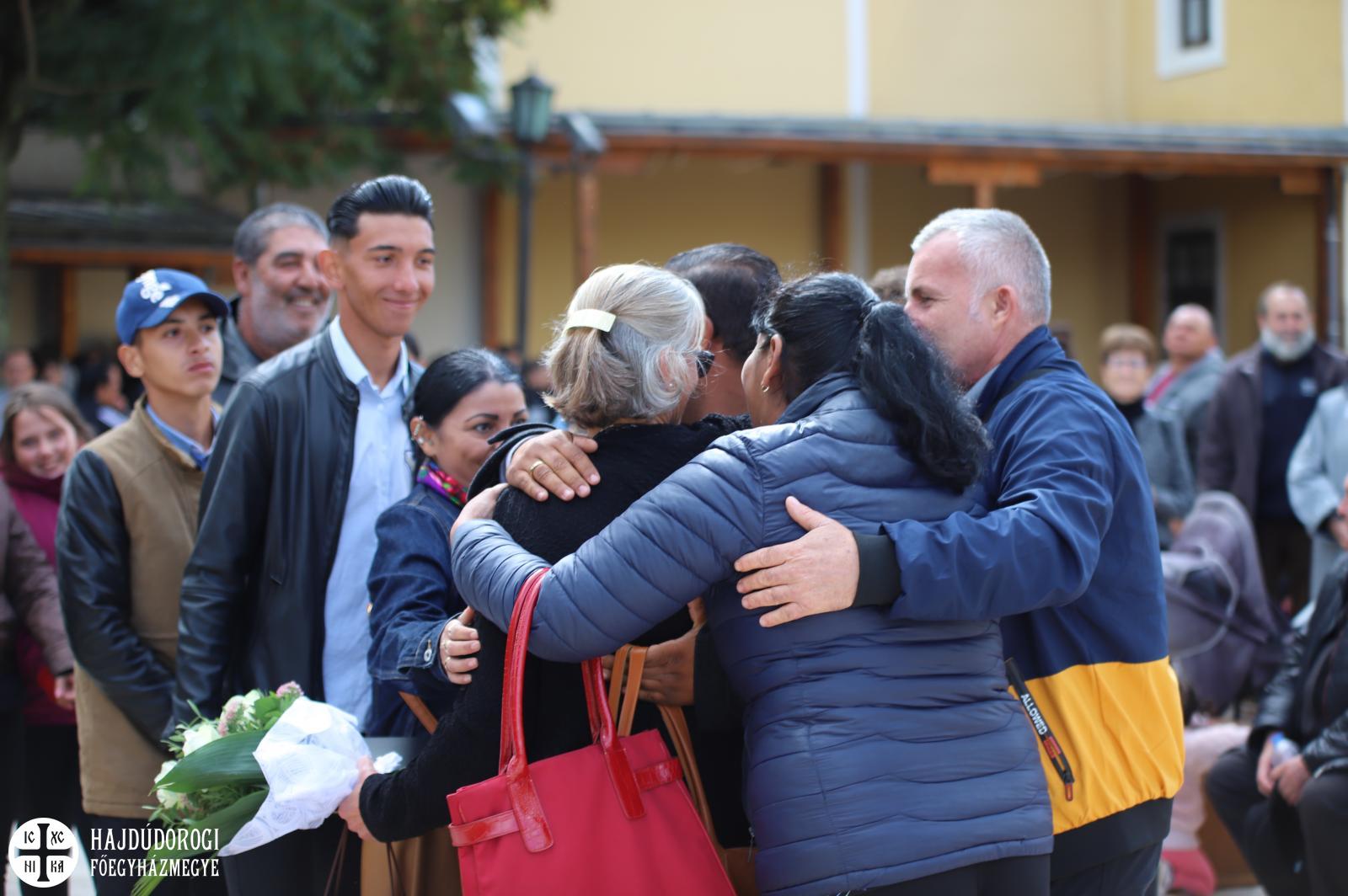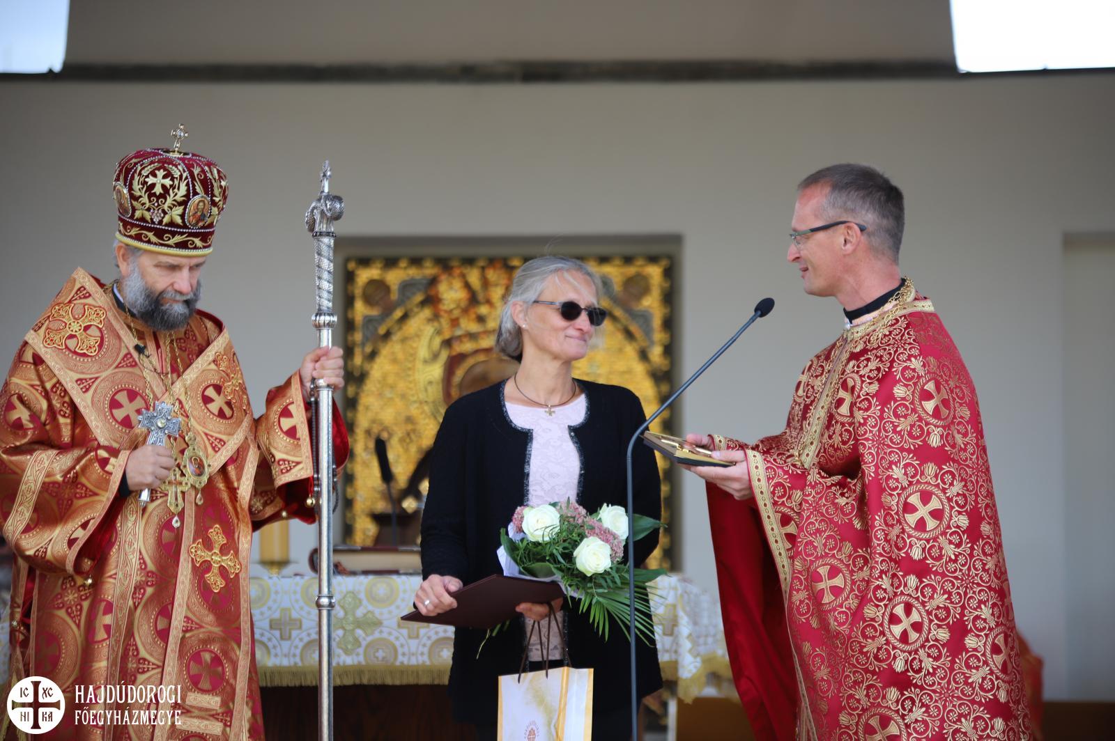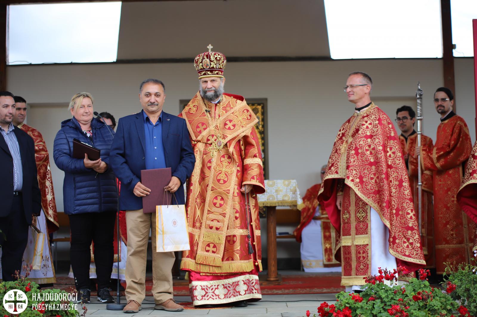 S hogy milyen igaza volt, az is bizonyítja, hogy az égi áldás rövidesen esőcsöppek helyett a kékre derült égből sziporkázó napsütés formájában szállt a búcsúsokra. Ilyen tavaszias időben került sor a Szent Liturgia után a szokásos kitüntetések átadására. Fülöp metropolita mindhárom egyházmegyéből egy-egy cigánypasztorációban dolgozó munkatárs munkáját ismerte el a püspök atyák és a munkatársak javaslata alapján.