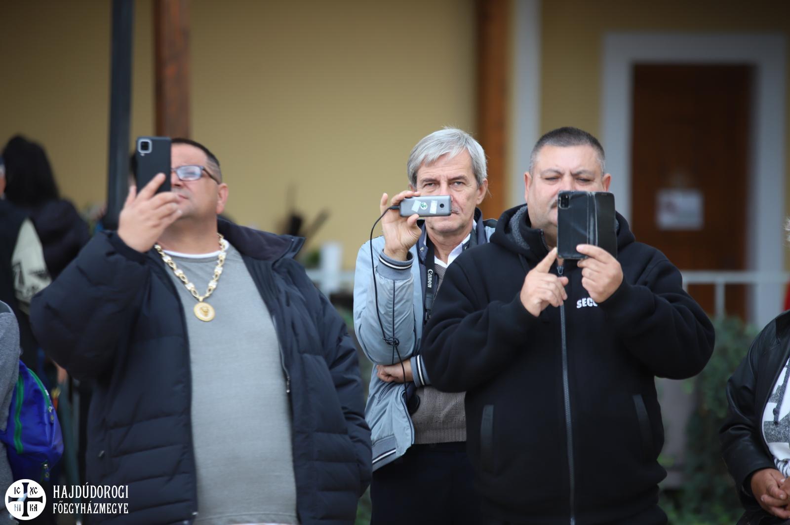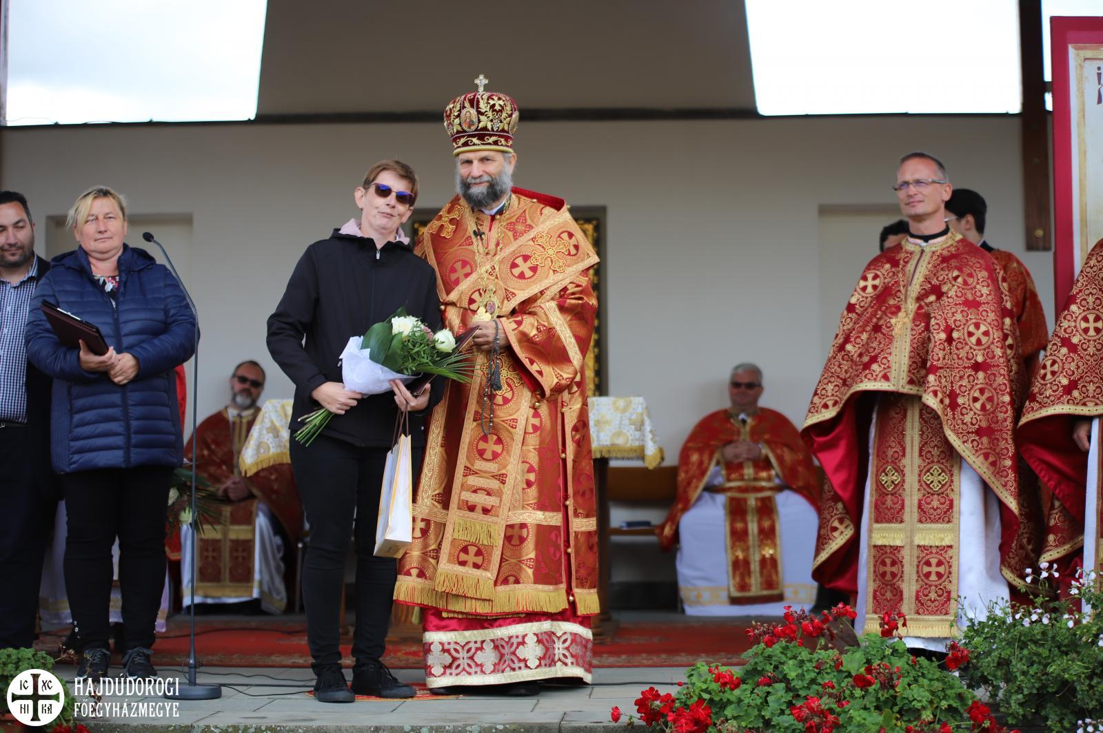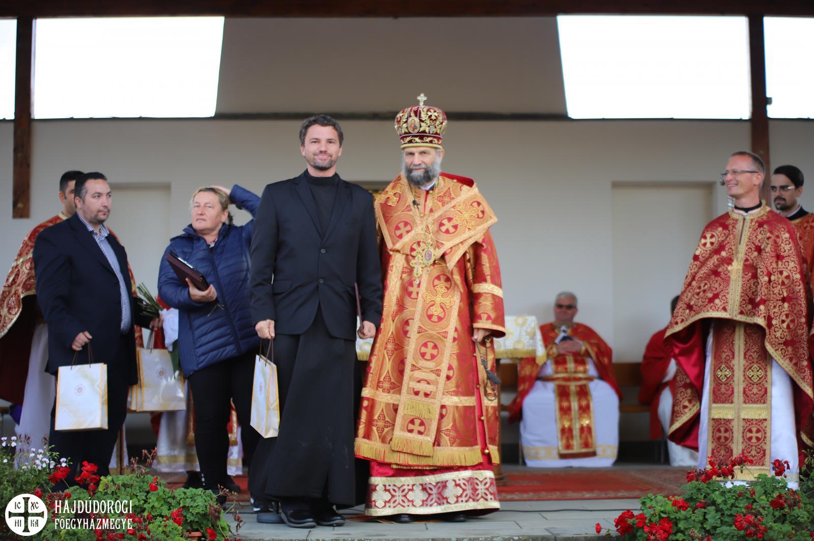 S hogy milyen igaza volt, az is bizonyítja, hogy az égi áldás rövidesen esőcsöppek helyett a kékre derült égből sziporkázó napsütés formájában szállt a búcsúsokra. Ilyen tavaszias időben került sor a Szent Liturgia után a szokásos kitüntetések átadására. Fülöp metropolita mindhárom egyházmegyéből egy-egy cigánypasztorációban dolgozó munkatárs munkáját ismerte el a püspök atyák és a munkatársak javaslata alapján.