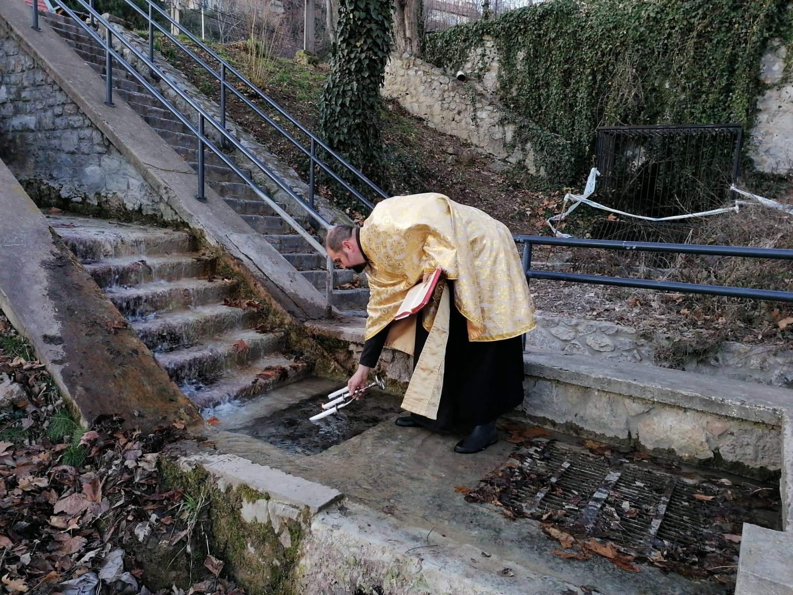 A bizánci egyházban háromféle vízszentelés van. A vízkereszti nagy vízszentelés, amit kétszer végzünk. Először vízkereszt előestéjén a Bazil-liturgia után, rendszerint a templomban történik a víz megszentelése, ilyenkor a templomi használatra szolgáló vizet szentelik meg.