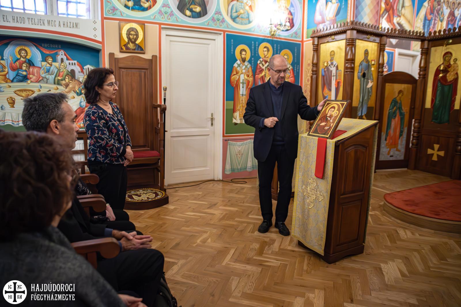 Az önkormányzat részéről Puskás István alpolgármester fogadta a delegációt, tőle Debrecen és az egyházak sok évszázados, szerteágazó kapcsolatairól tájékozódott. Megtisztelő volt, hogy a debreceni városháza után a Görögkatolikus Metropólia székházába vezetett a vendégek útja, ahol dr. Seszták István főhelynök vezette körbe az ENSZ munkatársait. Emellett a görögkatolikus egyház múltjáról és jelenéről tartott nekik egy átfogó beszámolót.