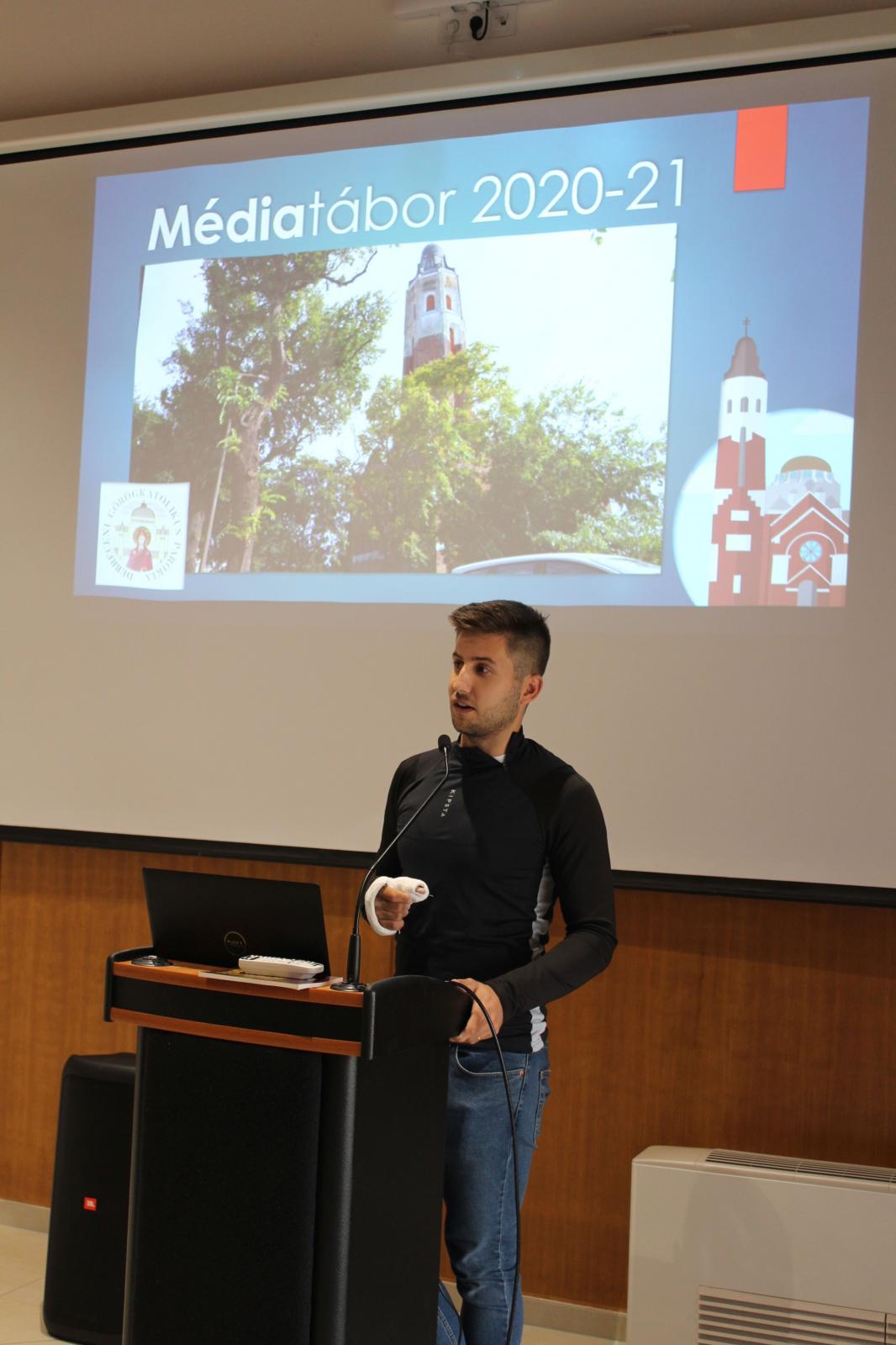 Kondás Sándor atya, a Görögkatolikus Médiaközpont vezetője egészségügyi okok miatt nem tudott részt venni az esten, ezért fia, Kondás Kristóf mutatta be a 2020-as Médiatáborban résztvevő gyermekek és fiatalok munkáit. A kiscsoportokban táborozó fiatalok tavaly készült videóit, képeit látva több résztvevő gyermek arcára is nosztalgikus mosolyt csalt az előadás.