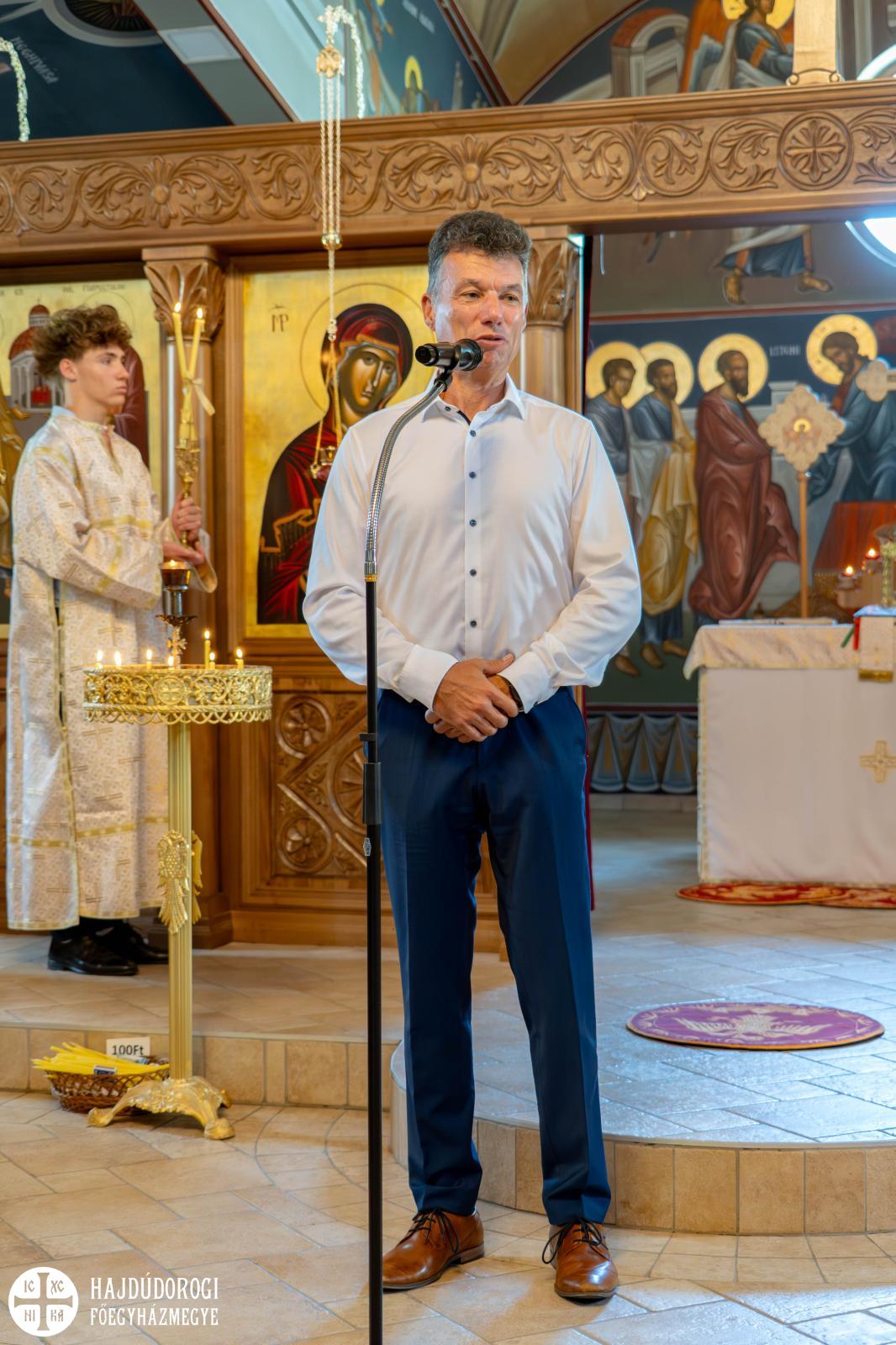 „Az országnak egy olyan területén élünk, ahol hagyományosan nem görögkatolikusok az emberek. A létszámuk azonban odáig növekedett mára, hogy egyre több ilyen ünnepségen vehetünk részt, és egyre több eredménnyel is büszkélkedhetnek, dicsekedhetnek. Az elmúlt 15 évben ez a közösség képes volt arra, hogy felépítse ezt a templomot, aztán fölépítsen egy óvodát. Sokfelé látjuk a városban a közösség keze munkájának javait, ez a csapat jó célokat tűzött ki maga elé” - ismerte el a polgármester.
