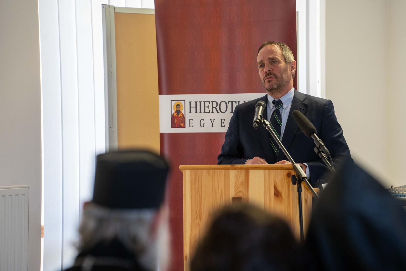 Azbej Tristan, az üldözött keresztények megsegítéséért és a Hungary Helps Program megvalósításáért felelős államtitkár maga is többször járt a térségben. A konferencián előadó, válsághelyzetekkel küzdő ukrán és szír területek egyházi vezetői jelenlétében mutatta be a Kormány 2017-ben indított humanitárius segítségnyújtó programját. Az elmúlt évek során a programon keresztül nyújtott humanitárius támogatásokkal, oktatási programokkal és újjáépítésben nyújtott segítséggel több mint ötven országban félmillió ember szülőföldön való megmaradását vagy otthonába való visszatérését tette lehetővé a program, amely kiemelten, de nem kizárólagosan segíti a keresztény üldözötteket. „Büszkeség és súlyos felelősség is ez a küldetés, amely a reményt viszi el az emberekhez” – összegezte az államtitkár.