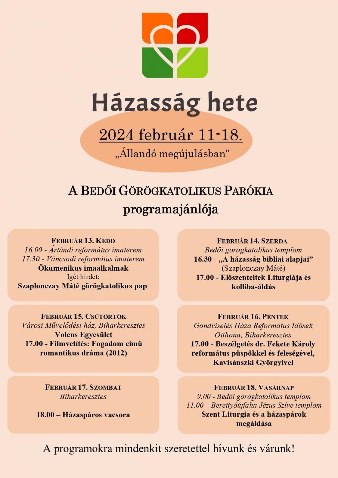 Hajdú-Bihar vármegyében, a Bedői Görögkatolikus Parókia több helyszínen is várja az érdeklődőket, akár egy romantikus filmet is meg lehet nézni Biharkeresztesen, de Fekete Károly református püspököt is vendégül látják. Részletek a plakáton: