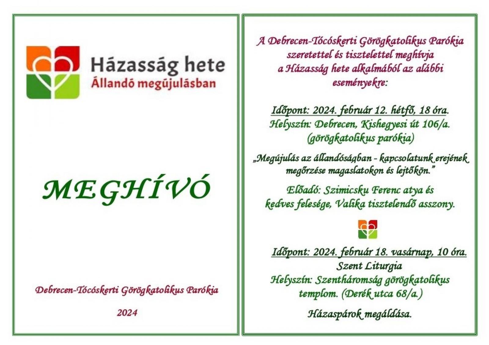 Debrecenben a Tócóskertben Szimicsku Ferenc atya és felesége lesz a vendég: