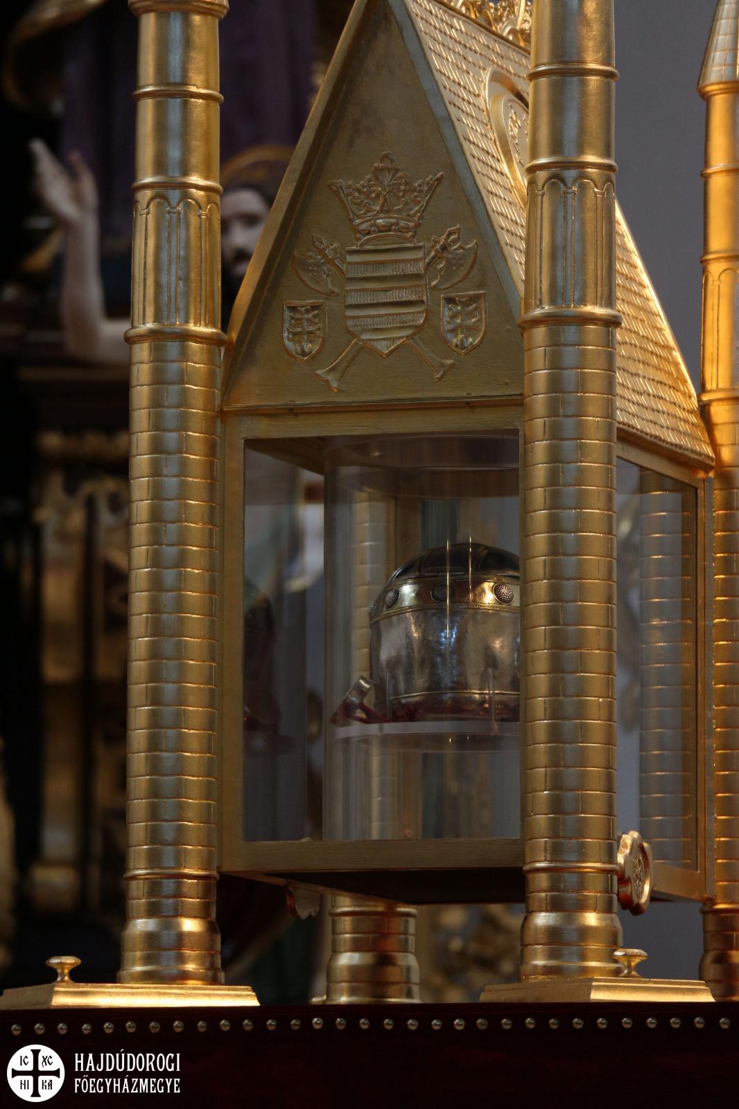 Az ünnepségre érkezett a Győrben őrzött Szent László koponyacsont-ereklye, amelyet a Magyar Katolikus Püspöki Konferencia tagjai, a határon túli katolikus egyházmegyék püspökei, a Debrecen-Nyíregyházi Egyházmegye papjai és hívei, valamint országos és megyei politikusok fogadtak. A szentmisét követő emlékévi vándorkiállítás megnyitóján Potápi Árpád János nemzetpolitikáért felelős államtitkár hangsúlyozta, több mint 900 évvel ezelőtt a magyar nemzet megmaradásának az egyik legfontosabb sarokkövét rakták le a király, valamint a papság és az állam vezetői. Az ekkor elfogadott első törvénykönyv rendelkezéseiben az az egyértelmű üzenet húzódik meg, hogy nincsen ország egyház nélkül, nincsen nemzeti felemelkedés Isten kegyelme nélkül - fogalmazott az államtitkár. Hozzátette, a törvény által lettek a felépített templomok a nemzet, a közösségének épülésének valódi színhelyeivé, az egyházi ünnepek a nemzet ünnepeié, az Istenbe vetett hit pedig a magyarság megtartó erejévé. A nemzetet a kereszténység útján Szent István király vezette, szívében igazán Krisztus-hívővé azonban Szent László tette, aki számára a keresztény vallás nem az egész egyház támogatását jelentette, hanem egy belső iránytűt, amely minden cselekedetét meghatározta - jelentette ki beszédében az államtitkár.