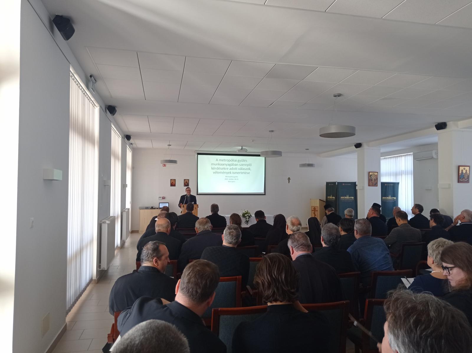 A harmadik, a főelőadást Galambvári Péter tartotta. Ebben ismertette a szinódusi út során beérkezett vélemények összességét. Amely egyszersmind a metropóliai gyűlés fő anyagát is adta. Sok kérdés fogalmazódott meg ennek kapcsán, hogy milyen feladatok várnak ránk egyházunk közeli és távoli jövőjében.