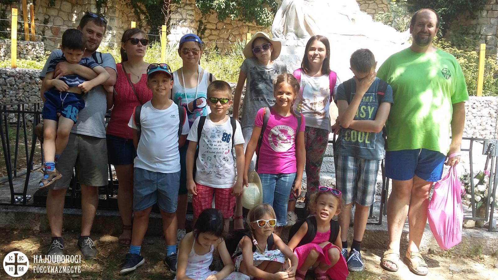 2017. augusztus 7-én egy izgatott gyerekcsapattal indultunk útnak Máriagyűdre a görögkatolikus hittantáborba. Az indulást megelőzően mi felnőttek is lelkesen készültünk, hogy a táborban minél több élményt tudjunk nyújtani a ránk bízottaknak. Az indulást követően az első állomásunk Siklósra vezetett, ahol Szent Liturgián mélyítettük hitünket és kértük a Jóistent, hogy áldásával kísérje végig táborunkat. A lelki töltődés után a Siklósi Várba igyekeztünk, ahol már nagyon vártak bennünket. Rendkívüli történelem óra keretein belül sok élménnyel gazdagodtunk. Közelről megfigyelhettük egy páncélba öltözött katona felszereléseit, láthattuk, hogy milyen sanyarú sorsuk volt a várbörtönbe zártaknak, a vár bástyáiból megcsodálhattuk a tájat is és még sok érdekességgel bővítettük tudásunkat. A várban jól megéheztünk, ezért ellátogattunk egy helyi pizzériába, ahol nagyon finom ebédet kaptunk. Ismét energiával feltöltekezve igyekeztünk a buszpályaudvarra, és utaztunk tovább a Máriagyűdi Kegyhelyre, ahol elfoglaltuk a szállásunkat. Miután feltérképeztük a tábori lakhelyünket, római katolikus szentmisén vettünk részt, melyet a helyi atya celebrált. A mise után finom vacsorával vártak bennünket. A vacsora elfogyasztása után a kegytemplom alatti játszótéren töltöttük az estét. Besötétedéskor hálaadással zártuk a napot.