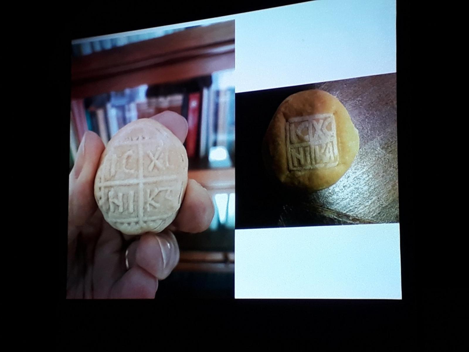 Az előadó történelmi áttekintést nyújtott egészen az ókortól kezdve napjainkig a „megjelölt” kenyérről, melyen a „Jézus Krisztus győz” felirat szerepel, melyet egy speciális pecséttel nyom bele a kis cipócskába a proszfora készítője, aki néhány kivételes esettől eltekintve mindig a papné. Az első századokban a kereszttel megjelölt kenyeret, majd a tiszta finom búzalisztet a hívek hozták. Ennek még valahol most is hagyománya van, hogy a lisztet, vagy a mirováláskor a liszt vásárlása céljából tálcára tett pénzösszeget a hívek adják. Szó volt a lítia során megszentelt kenyérről, valamint az antidor fogalmáról is.