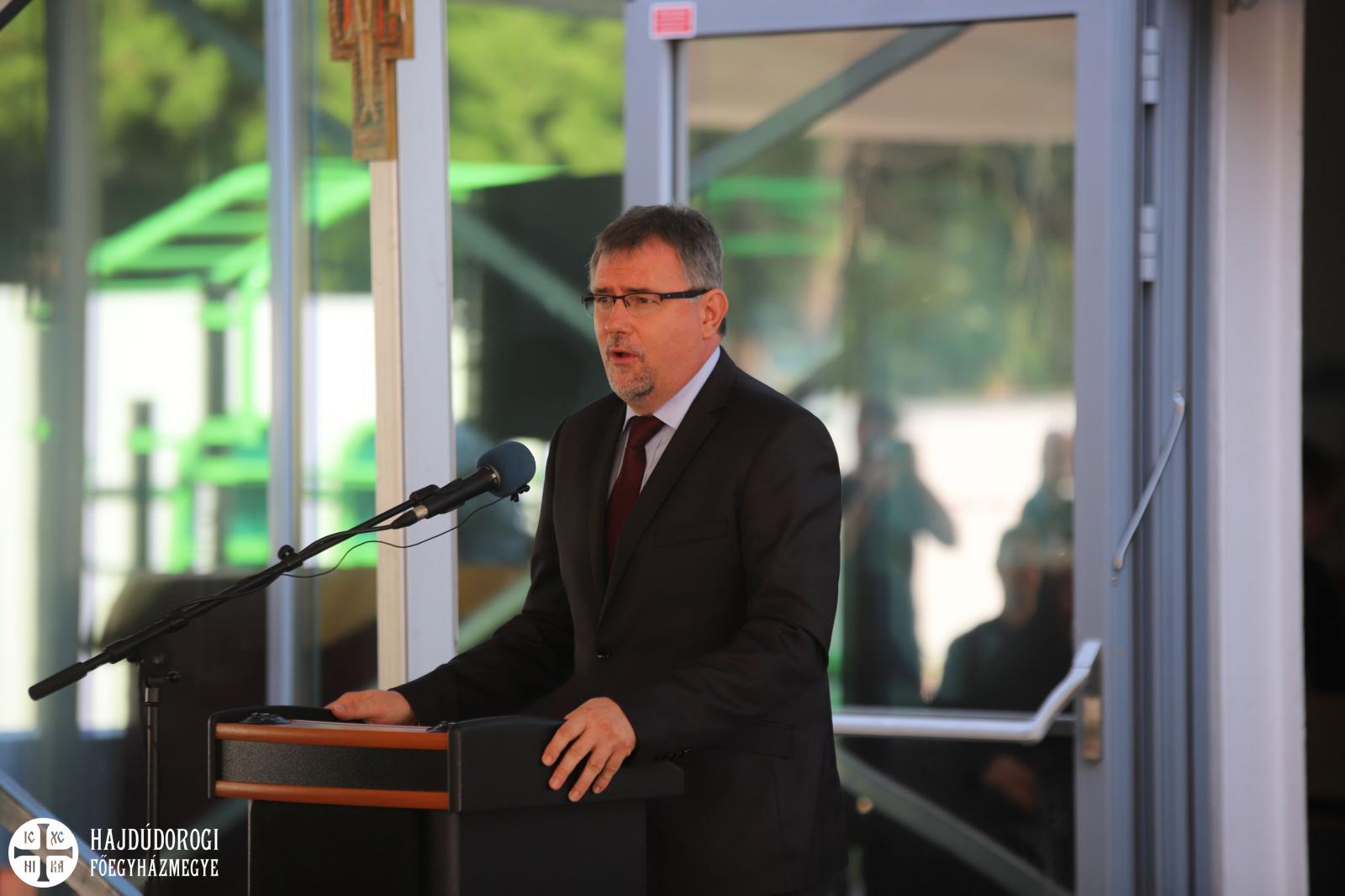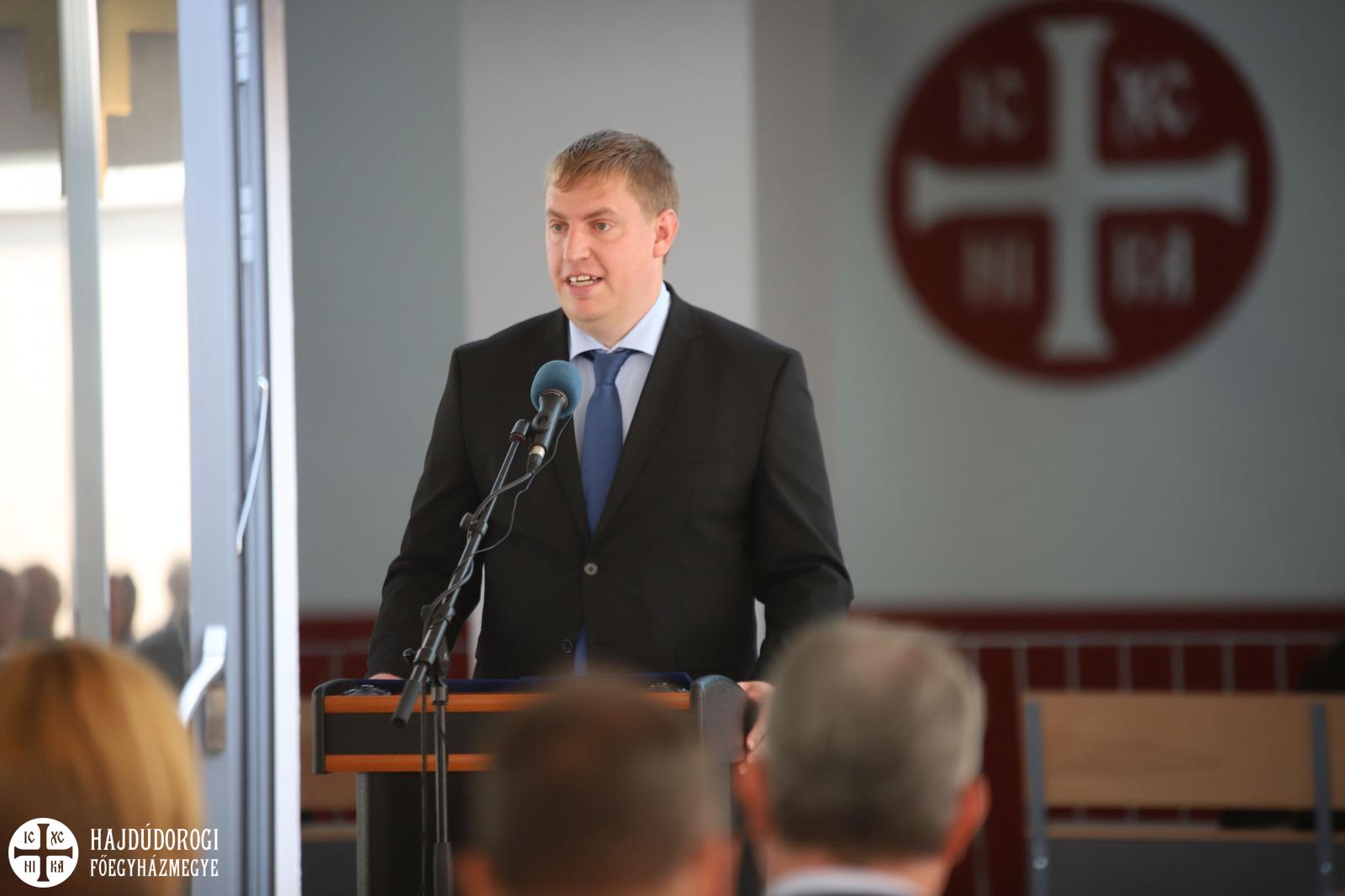 Az ünnepséget megtisztelte jelenlétével Szabó Tünde sportért felelős államtitkár, aki beszédében utalt az ókori mondásra - ép testben, ép lélek -, ami Debrecenben megvalósul, hiszen majdnem minden gyerek sportol. Kijelentette továbbá, hogy nemcsak nagy nemzetközi versenyek helyszíne a megyeközpont, hanem a kisebb létesítmények is fontosak a városnak, így a versenyzőkön kívül a fiatalok sportolására is odafigyelnek. Az 1800 négyzetméter alapterületű sportcsarnok legalább olyan fontos, mint a Duna Aréna vagy a Puskás Akadémia - fogalmazott. A továbbiakban emlékeztetett arra, hogy a kormány minden támogatást megad a 2014-ben bevezetett mindennapos testneveléshez. Az pedig, hogy az egyház és a civil társadalom egymásra talált itt, a legjobb példája az egészség megőrzésének.