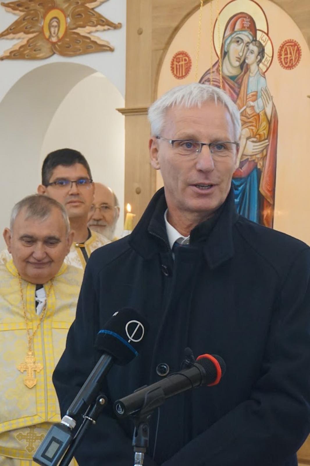 Ünnepi beszédében Soltész Miklós államtitkár örömét fejezte ki az új templom felépítésének láttán, hiszen Nyugat- és Észak-Európában sokszor épp azt látjuk, hogy a templom épp bezár, mondta az államtitkár. Ennek a folyamatnak két iránya van - mutatott rá -, egyrészt, egyházaink Nyugat-Európában otthagyták azt az ezeréves hitet és a kétezer éves krisztusi tanítást, amit itt mi, Európa közepén megkaptunk. A másik, ami miatt mindez megtörténik, hogy papjaink és egyházaink tisztelete kezd ”kimúlni". Később megjegyezte: ha hitünket a krisztusi tanítás szerint megtartjuk, illetve az egyház szolgálatával és segítségével adjuk át, akkor biztos, hogy ez nálunk nem fog megtörténni. Egyúttal köszönetet mondott annak a megannyi „csöndes szolgálatnak” is, ami ezt az ügyet idősotthonokban, iskolában, a rászorulókkal való törődésben teljesíti.