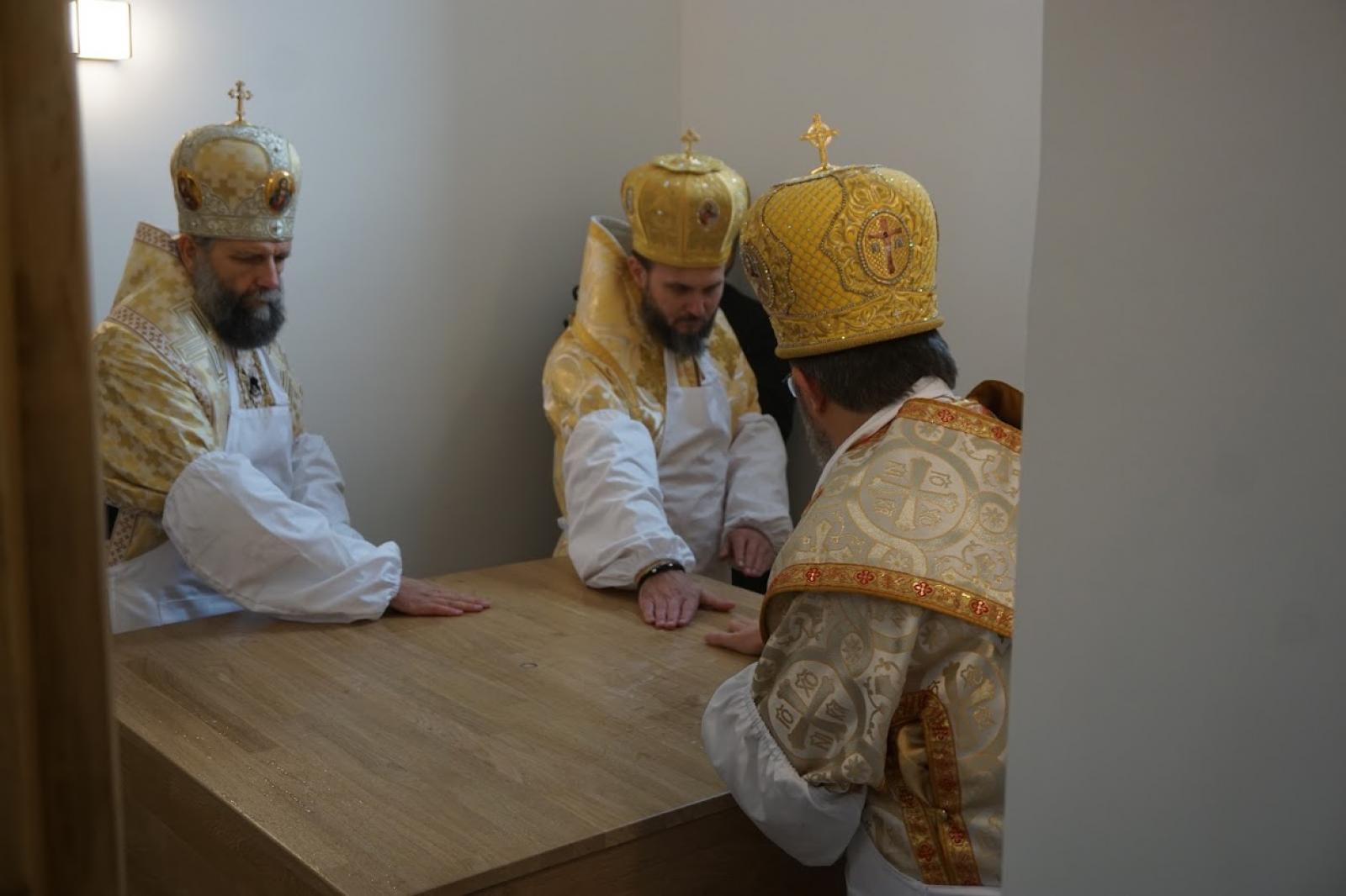 Ez után az oltár lemosásának szertartása következik, melynek során a főpásztorok Boldog Gojdics Pál püspök ereklyéit helyezték el benne. Majd a templom falait, valamint a szentélyt kijelölő képállványt szentelték meg. Az ünnepi Szent Liturgia már a megszentelt hajlékban folytatódott.