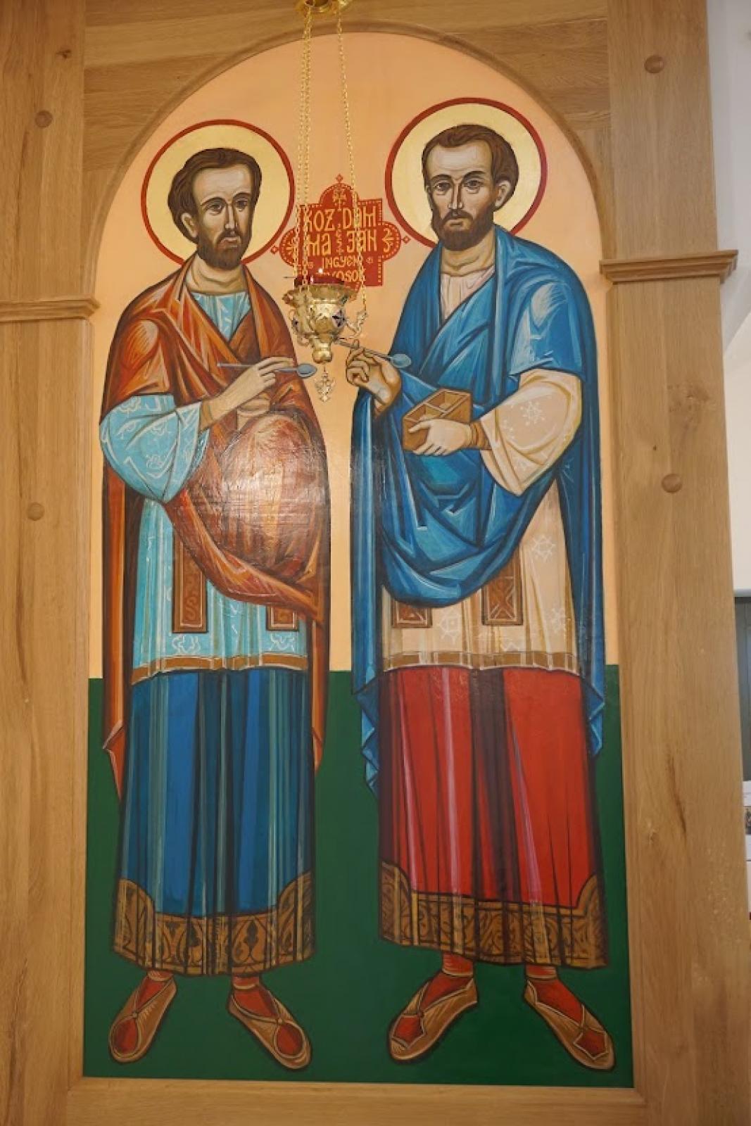 A templom tervezésére, építésére a bizánci hagyomány és a felvidéki, szlovákiai ruszin fa templomépítészet formajegyei hatottak. A templom alaprajza négyszögletű, mintegy 90 m2 nagyságú, a tetején egy nyolcszögletű kupolával. Több mint ötven fő befogadására alkalmas. A terveket Wachsler György készítette. A templomban gyóntatóhelyiség, illetve a liturgikus és egyéb eszközök tárolására alkalmas tereket is kialakítottak. A kivitelezői munkákat a Révisz Kft végezte. Elkészült a templomhajót és a szentélyt elválasztó képállvány is, az ikonokat Kárpáti László festette. Az új templomot Szent Kozma és Damján ingyenes orvos vértanúk tiszteletére szentelték fel.
