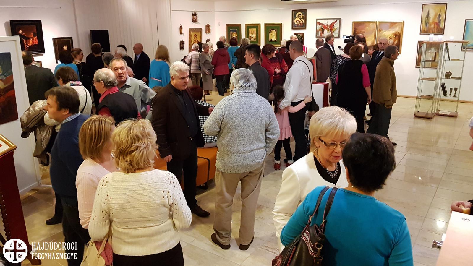 Talán mert az alkotók – nagyon sokan – olyan témákat festettek meg, melyeknek ihletője a hitük, a Szentírás, az Egyház, szentek, ünnepek vagy csak Isten-keresésük. Nem meglepő, hiszen így volt ez mindig is a történelemben, hogy az Isten nem hagyja nyugton az embert, a művésze embert sem. S ők a maguk eszközeivel igyekeznek megmutatni valamit abból, amit ők látnak, vagy láttatni akarnak. Főként a környékünkön élő művészek nagyon gazdag tárlata ez. A fafaragástól, a tűzzománcon át, a különféle stílusú festményekig – beleértve az ikonokat is – nagyon sok gyönyörű alkotás gazdagíthatja a látogató lelkét. S mivel Hajdúszoboszlón ez volt az első ilyen témájú kiállítás, ezért is óriási öröm, hogy már a megnyitón is volt legalább 150 ember. S azóta is nagyon sokan felkeresik.