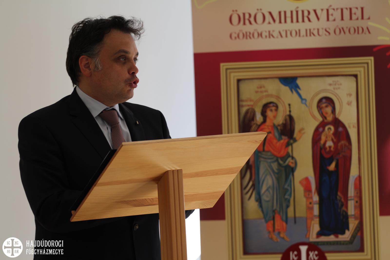 Végezetül megköszönte az óvónők kitartását, hogy lassan, de biztosan egy görögkatolikus otthont tudtak ide varázsolni, ami a pesti belváros betonrengetegében cseppet sem volt egyszerű. Külön is megköszönte a magyar állam financiális támogatásán túlmutató határozott nemzetpolitikai integritását is, hiszen az óvoda felújítása a “Katolikus Egyház óvodafejlesztési programjának keretén belül" valósult meg, melyben mintegy 275 millió forint támogatásban részesült.