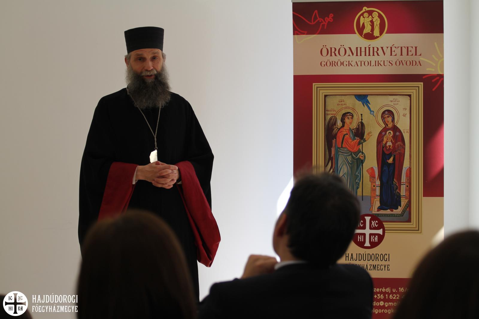 A főpásztor régi álma valósult meg azzal, hogy a fővárosban létrejött egy görögkatolikus óvoda. A gyermekek népi-gyermekjátékos bemutatója kapcsán elmondta, hogy nagy szükség van az ehhez az óvodához hasonló szigetekre a mai Istentől elfordult világban, ahol őseinktől kapott értéket Isten szeretetében tudják továbbadni. Örömhír ez az óvoda mindannyiunknak, de a mi feladatunk, hogy továbbadjuk ezt az örömöt az itt felcseperedőknek” – zárta sorait metropolita atya.