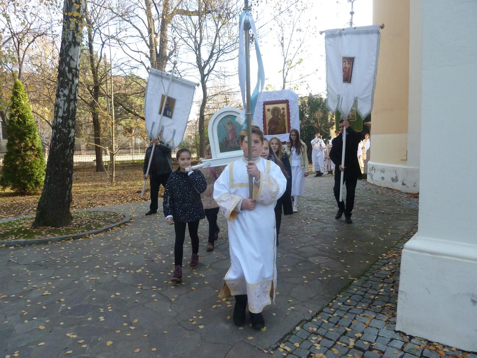 A homíliát érsek-metropolita atya az Istenszülő bevezetése a templomba ünneppel kapcsolatban tartotta. Prédikációjában felvetette a kérdést, hogy őseinket vajon mi vezethette arra, hogy erre az ünnepre szenteljék fel a templomot, hiszen nem találunk róla leírást a Szentírásban, az Újszövetségben. Az ősegyházban viszont nagyon korán elterjedt a Mária-tisztelet, Mária szerepének a jelentősége. Az apokrif irat alapján került előtérbe gyermekségtörténete, amelyből tudjuk, hogy Joachimnak és Annának öregségére született meg a kicsiny leányka, akit három éves korában vittek el a templomba és rögtön úgy érezte, hogy neki ott is van a helye. Kifejezhette a vágyát a szülők felé, akik szintén azzal a szándékkal mentek a templomba, hogy felajánlják a gyermeket, de ő is jól érezte magát Isten házában, és ott maradt, ott nőtt föl, ott készült föl a házasságra.