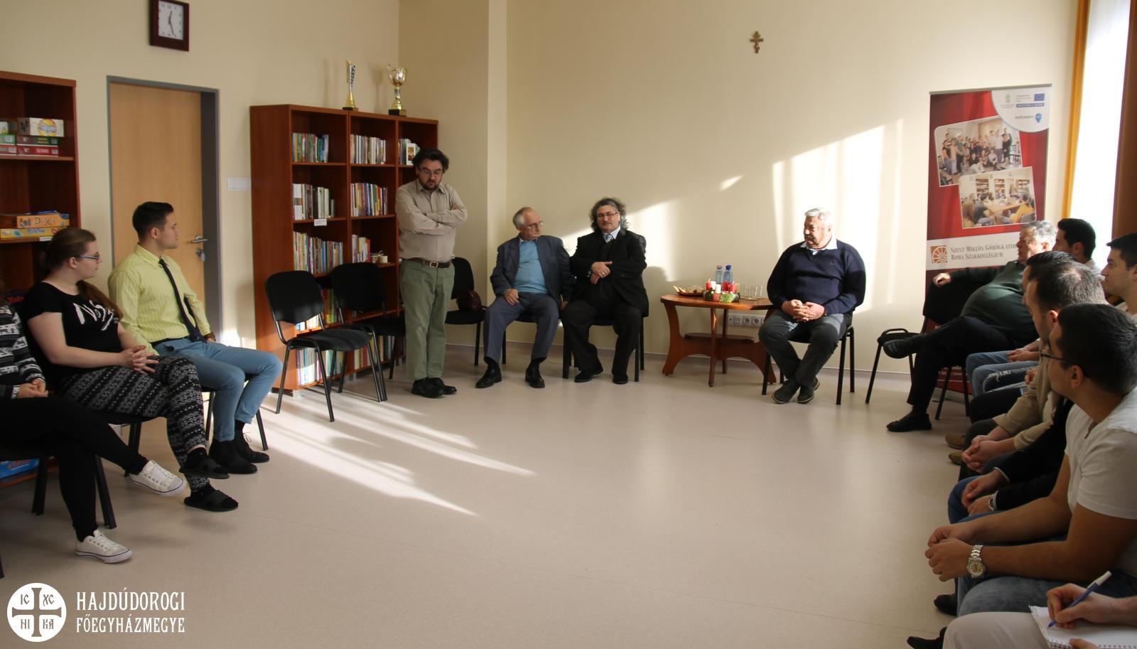 A Szent Miklós Görögkatolikus Roma Szakkollégium lelkivezetője, Kapin István atya meghívásának köszönhetően december első hétvégéjén láthatták vendégül az Emberi Méltóság Tanácsának vezetőit és tagjait Debrecenben: Dr. Lomnici Zoltánt, a Tanács elnökét, Dr. Szunai Miklóst, a szervezet főtitkárát, illetve Kathy-Horváth Lajost és Weisz Péter tagokat.