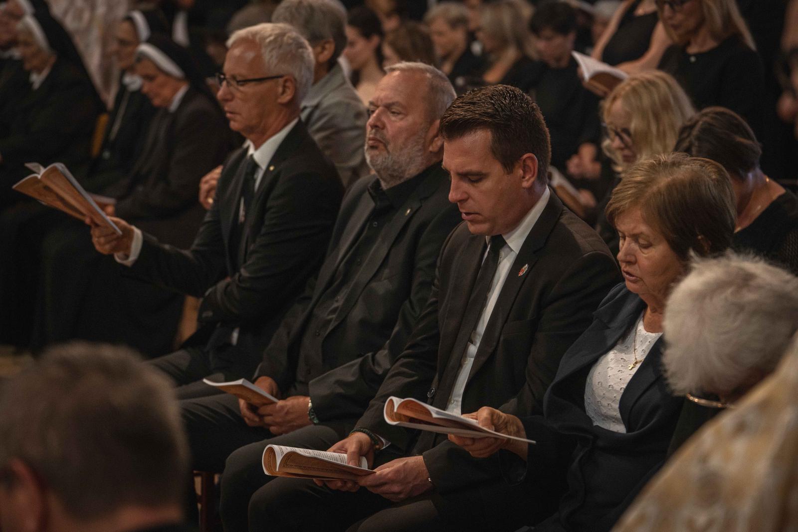 „Az ő ravatala mellett újra rádöbbenünk, hogy attól függetlenül, hogy mi egyszerű vagy nagyszerű emberek vagyunk, hogy hány évesek vagyunk, mindnyájunk élete rendíthetetlenül és megfordíthatatlanul halad a halál, a ravatal, a földi élet elmúlása felé. És ez szomorúság. Mégis úgy gondolom, hogy ezen a temetésen a szomorúsággal szemben az örök életnek a diadalát hirdetjük, és az örök élet diadalában a legfontosabb érzésünk a hálaadás” – fogalmazott a prédikációt tartó Kruppa Levente atya.