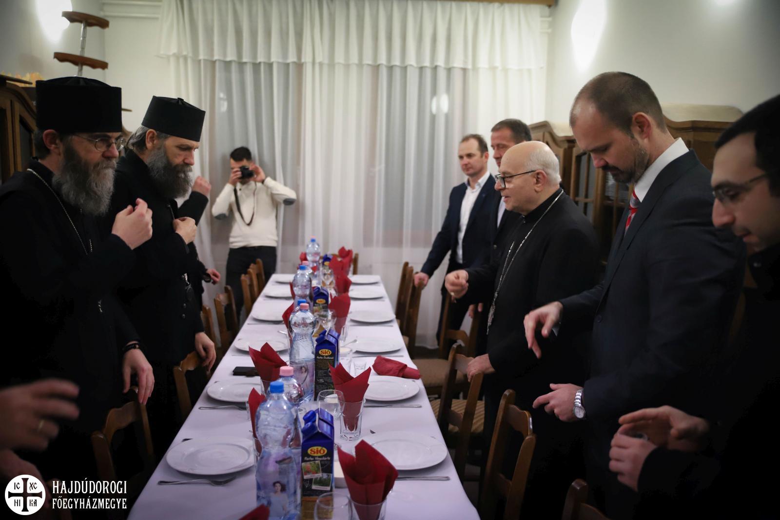 A vecsernyén jelen voltak a kormány kísérői, Tiba István országgyűlési képviselő, Csige Tamás, polgármester úr és a testületi képviselők is, majd közösen látogatást tettek a város görögkatolikus intézményében, ahol vacsorával fogadták őket.