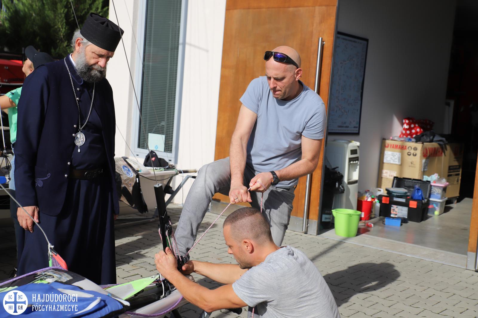 Fülöp atyát a BYC ügyvezető igazgatója, Böröcz István is köszöntötte. Miután a Cserép-fivérek „gyorstalpalót” adtak a vitorlázásról, megmutatták hajójukat, melyet Fülöp atya is segített az edzésre fölszereni. A vitorlára mutatva kijelentették:” nekünk van a legjobb szponzorunk. Lelki értelemben biztosan!”