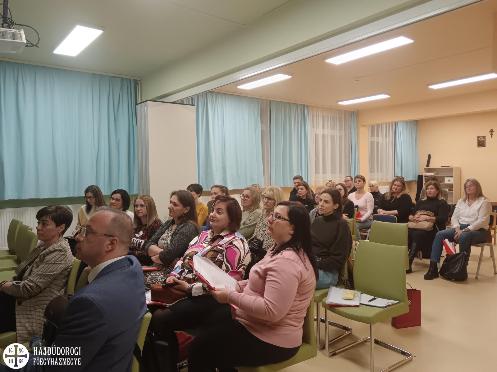 Az első alkalom 2025. november 25-én, kedden volt, „blended módon”. A belső szakmai képzésre a Debrecen és környékén lévő intézményeinkből személyes jelenlétre vártuk az érdeklődőket, a távolabbi intézményeinkből érdeklődők számára pedig online csatlakozással teremtettük meg a technikai feltételeket.