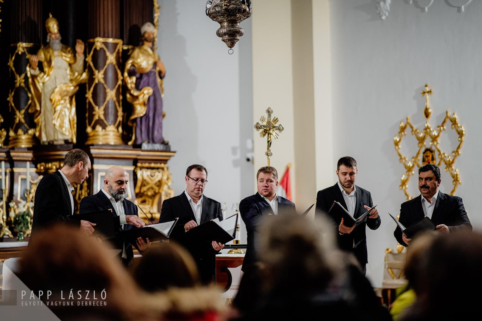 A két együttes a hangverseny végén Papp Viktor – aki a Szent Efrém legfiatalabb tagja – egyik feldolgozásával készült, zárásként pedig Dmitrij Bortnyanszkij nagyszabású kórusművét, a Te Deum-ot is énekelték egyházi szláv nyelven.